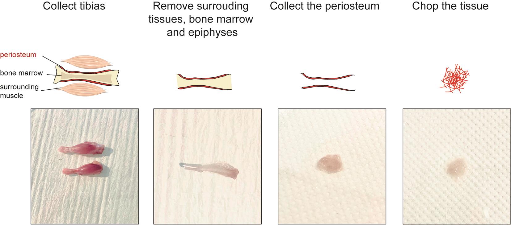 2. Periosteum from patients. We obtained fresh samples from patients undergoing surgery and processed them up to 4 h after tissue collection. Sample collection from patients requires approval by the Ethics Committee and formal consent from the donor