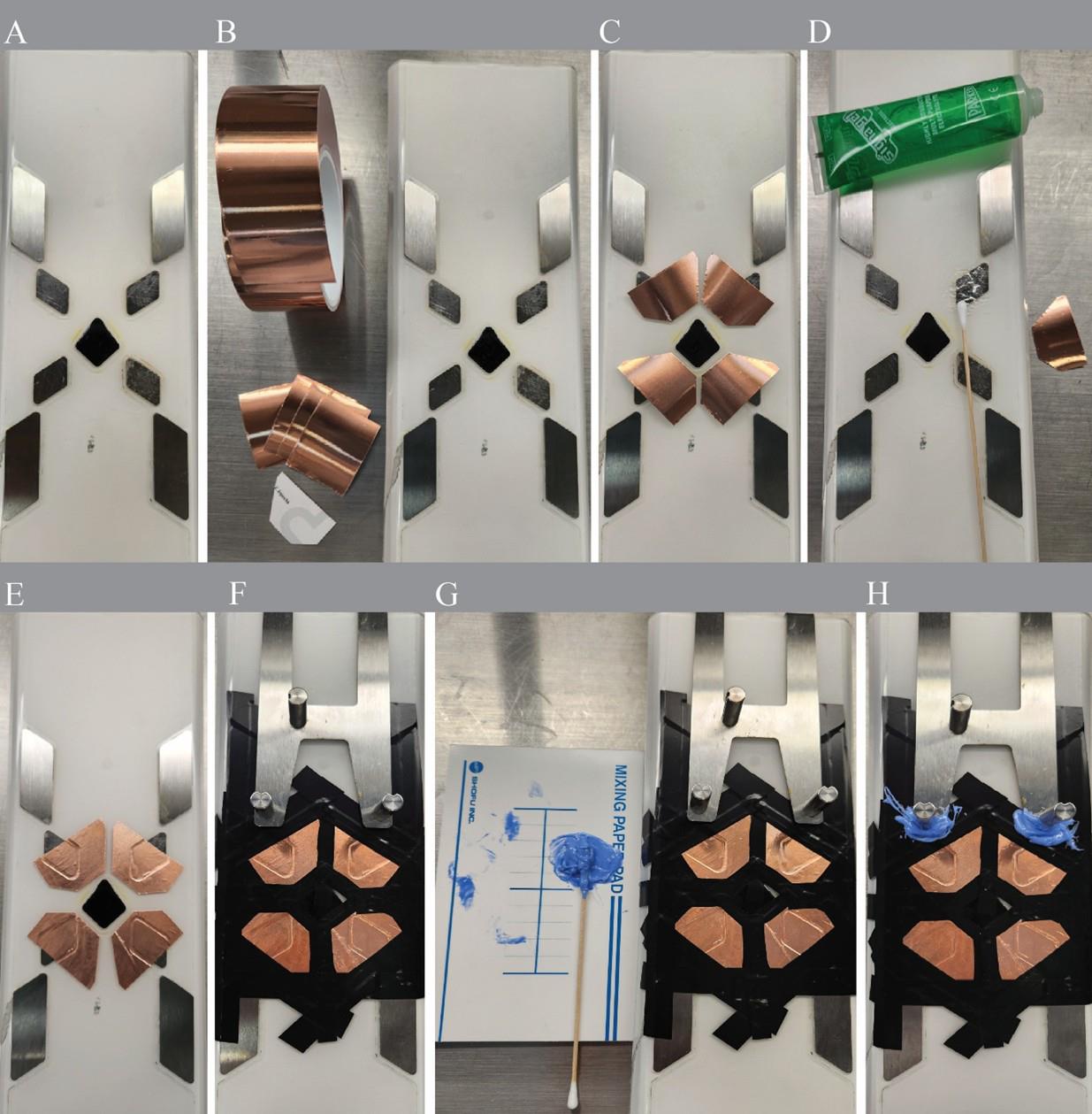a. Attach each copper to the existing electrode fields to extend their surface (Figure 1E).