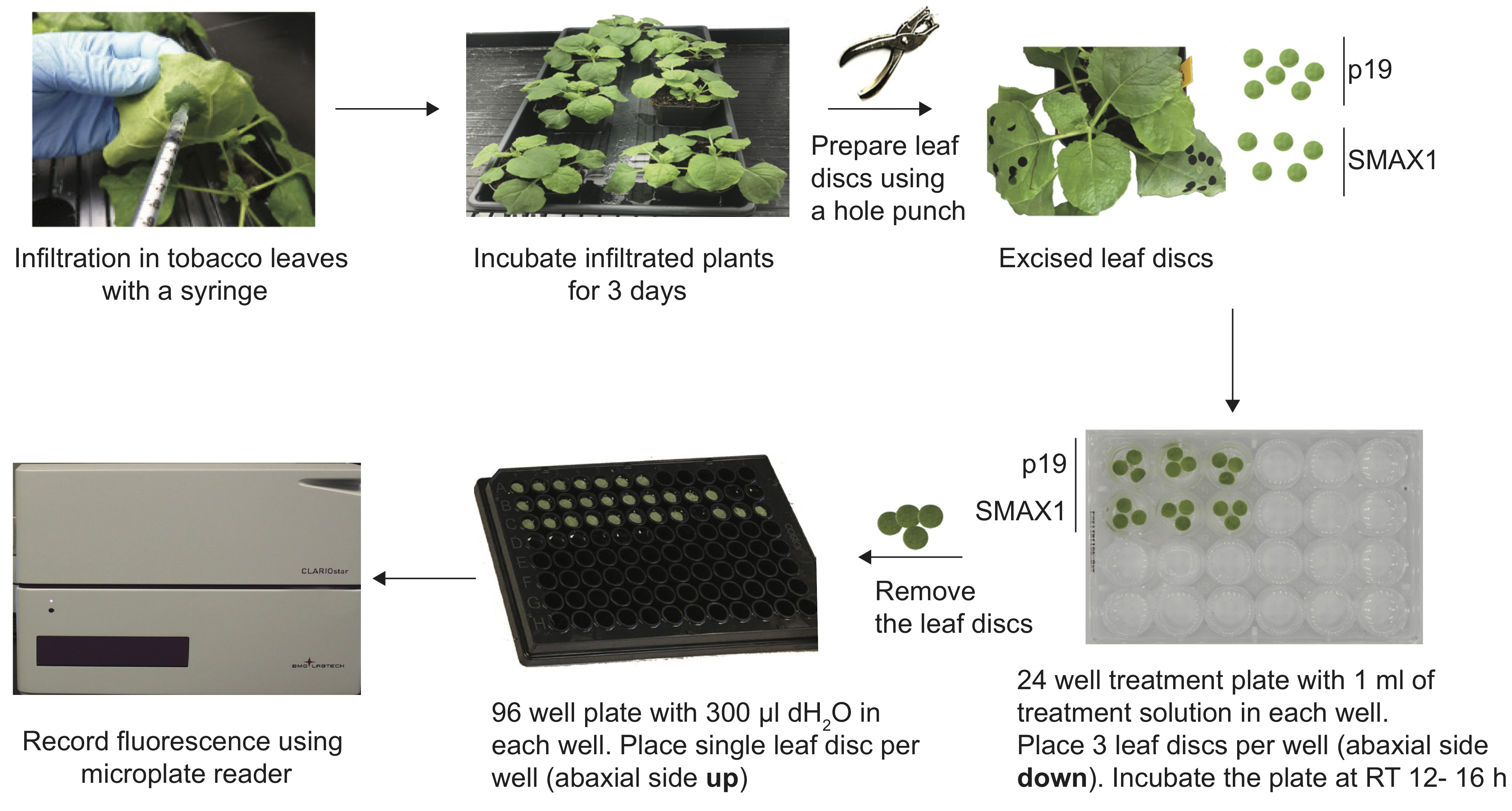 Here we present a detailed protocol for using the pRATIO system. As an example, we monitor KAR- and rac-GR24- induced proteolysis of Arabidopsis SMAX1 that has been transiently expressed in Nicotiana benthamiana.