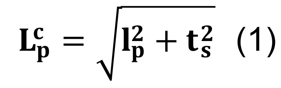 Correct for the artifactual flattening of three-dimensional arbors into two-dimensional images by combining the parcel-specific length, lp, with the reported section thickness, ts, using Pythagoras’ formula:
