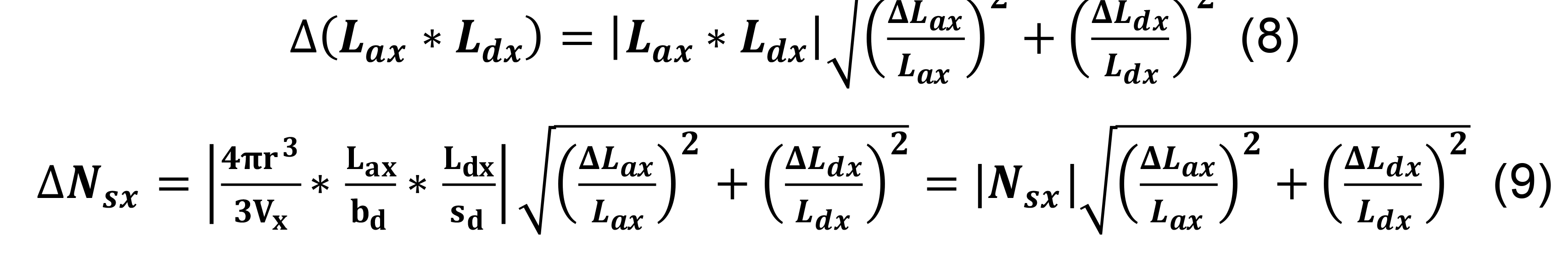 Calculate the standard deviation of Nsx by propagating the standard deviations of Lax and Ldx using the formulas for products and constants,