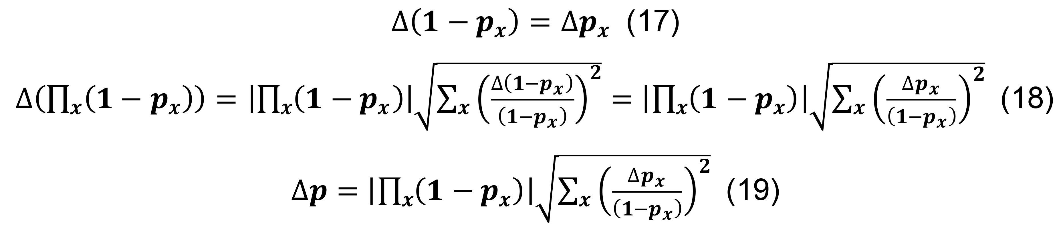 Determine the total connection probability from Equation (7), and calculate the associated standard deviation using the formulas for differences and products,
