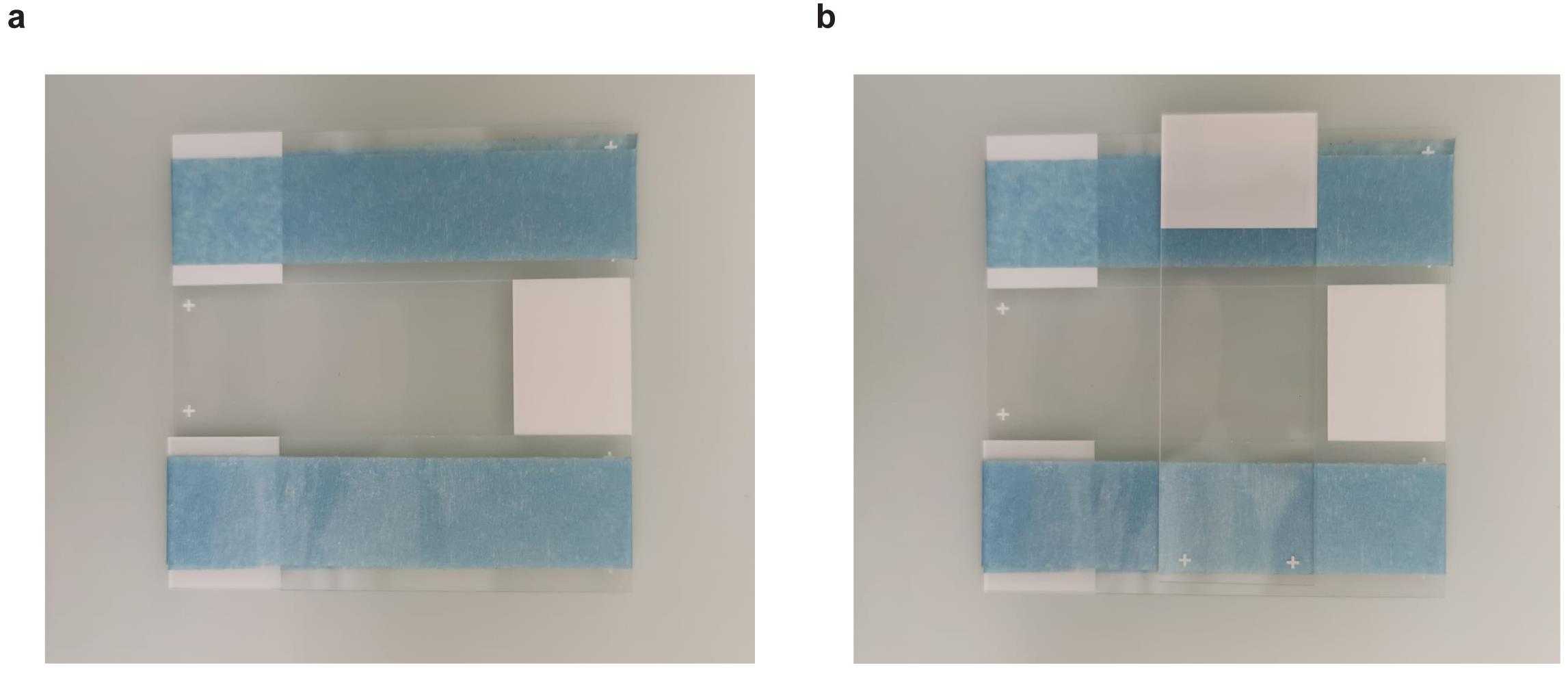 Figure 1. Agarose pads preparation. First (a) and second (b) steps for the preparation of agarose pads described in Step F2.