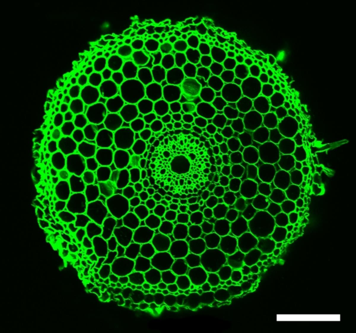 Figure 7. Radial confocal images of rice root grown in non-compacted soil (1.1g/cm3). Scale bar: 100 μm.