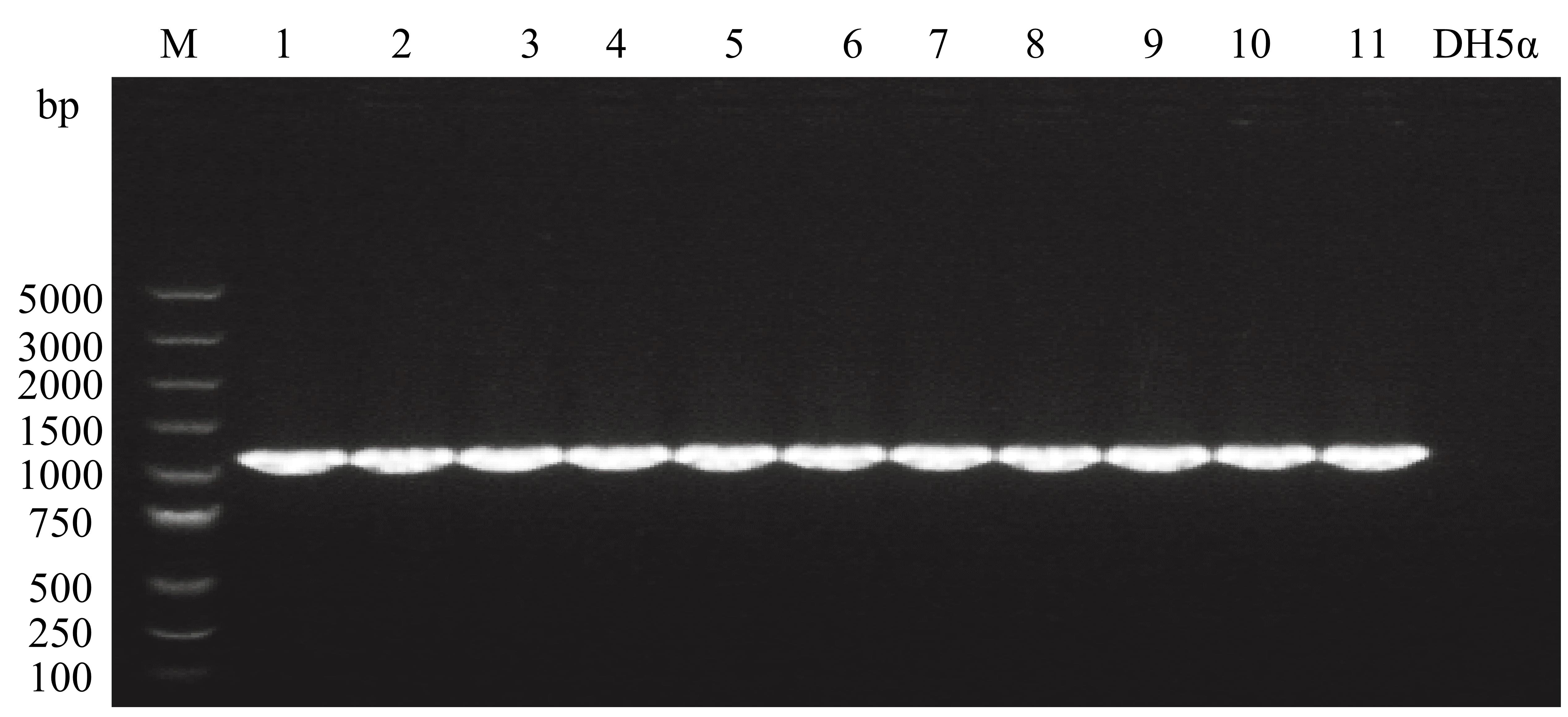 Figure 4. PCR amplification from E. coli DH5α λpir transformants carrying pKNOCK-sacB-km-lacZ