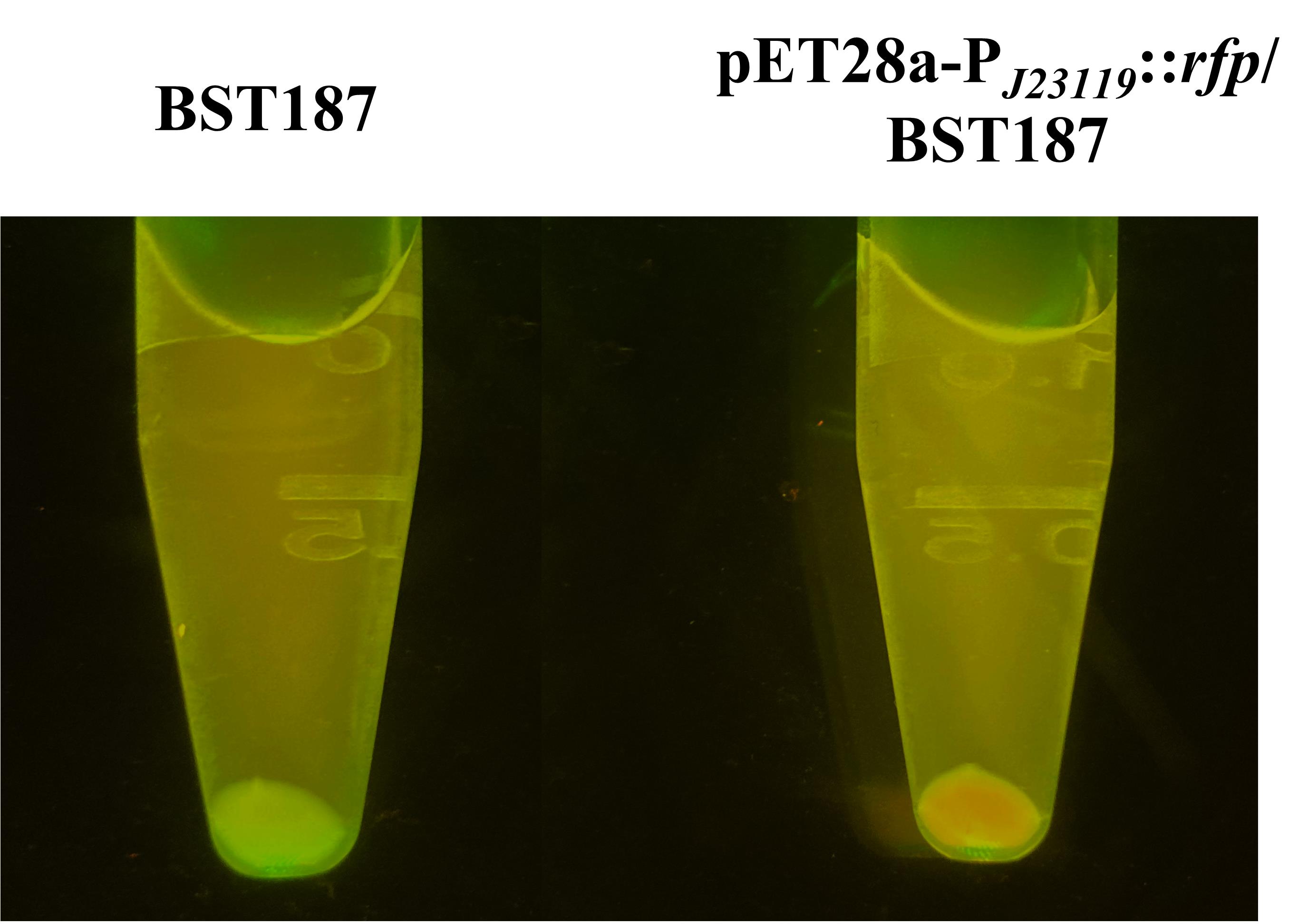 Figure 3. BST187 transformant carrying pET28a-PJ23119::rfp
