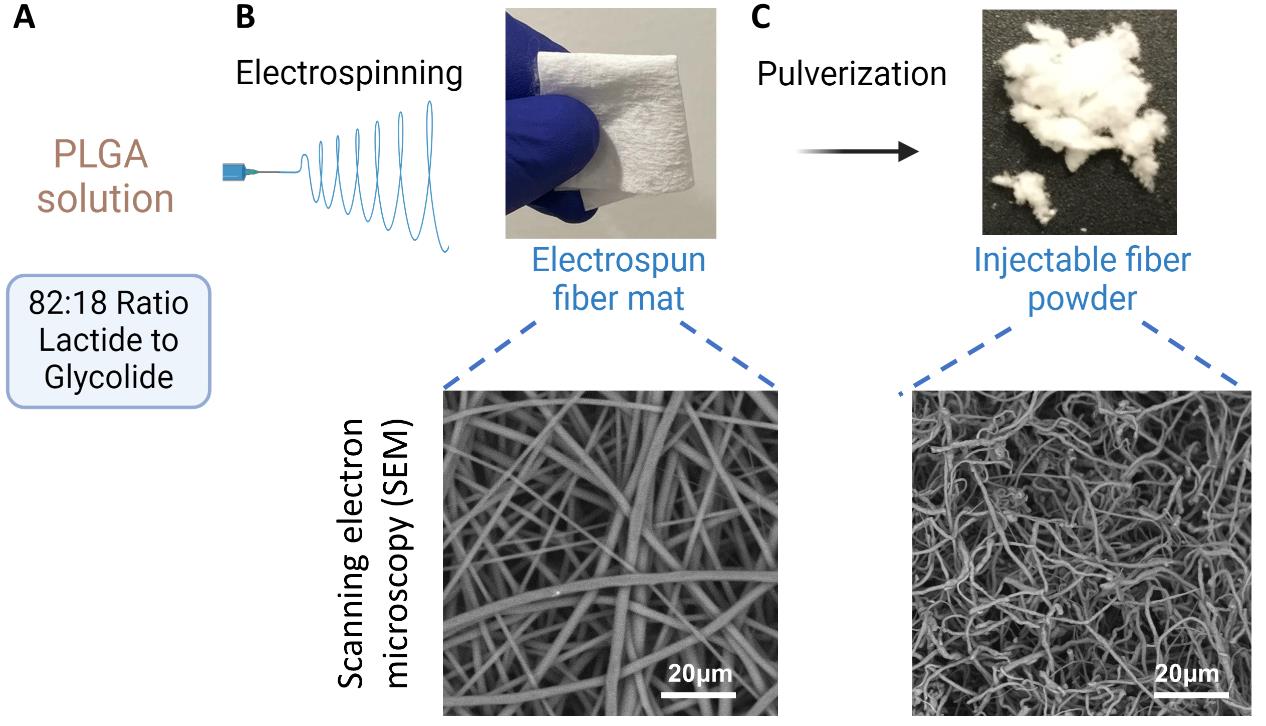 • Pulverized PLGA fiber mats to create a fibrous "slurry" that allows injection.