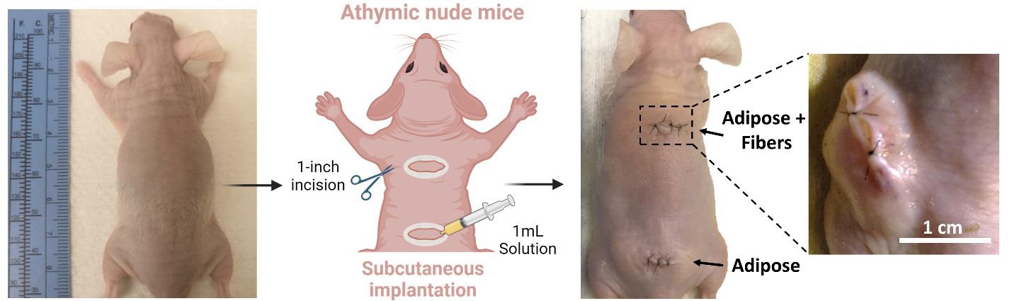 Note: Inject adipose tissue alone as a control, as opposed to the adipose tissue–fiber combination treatment.