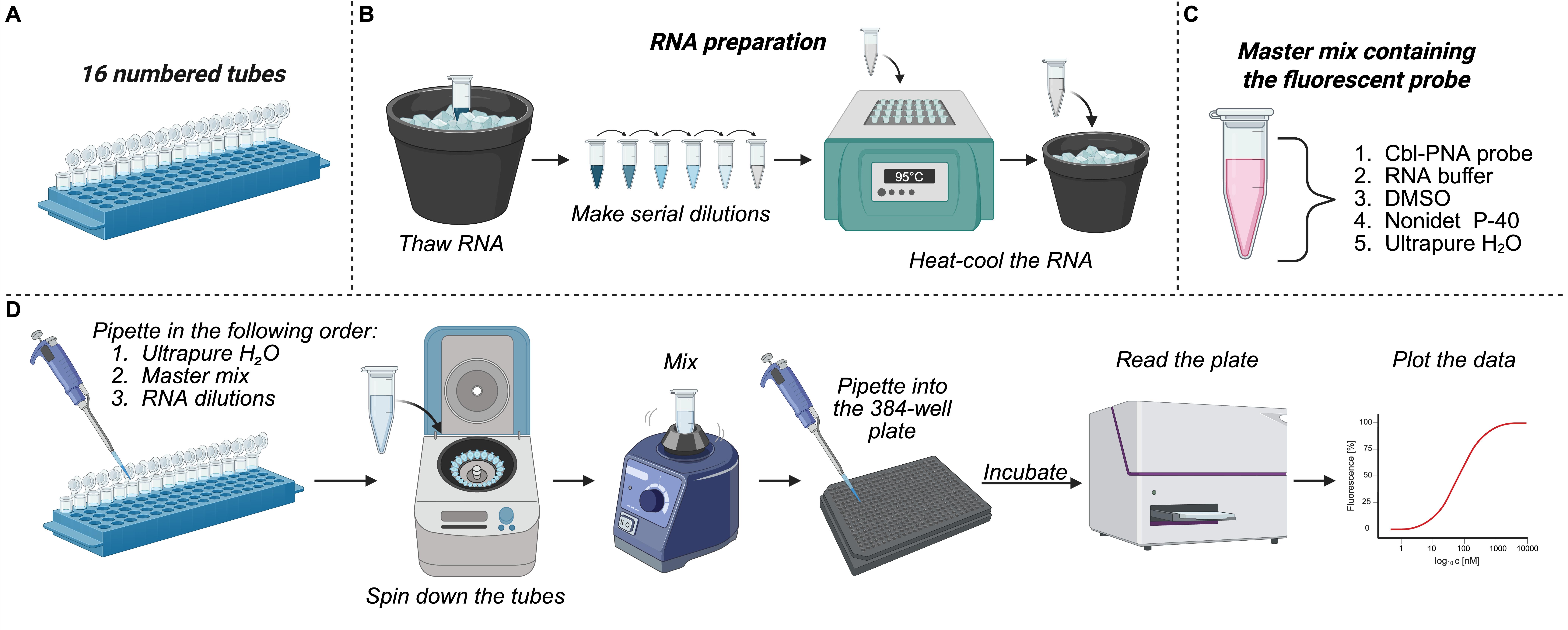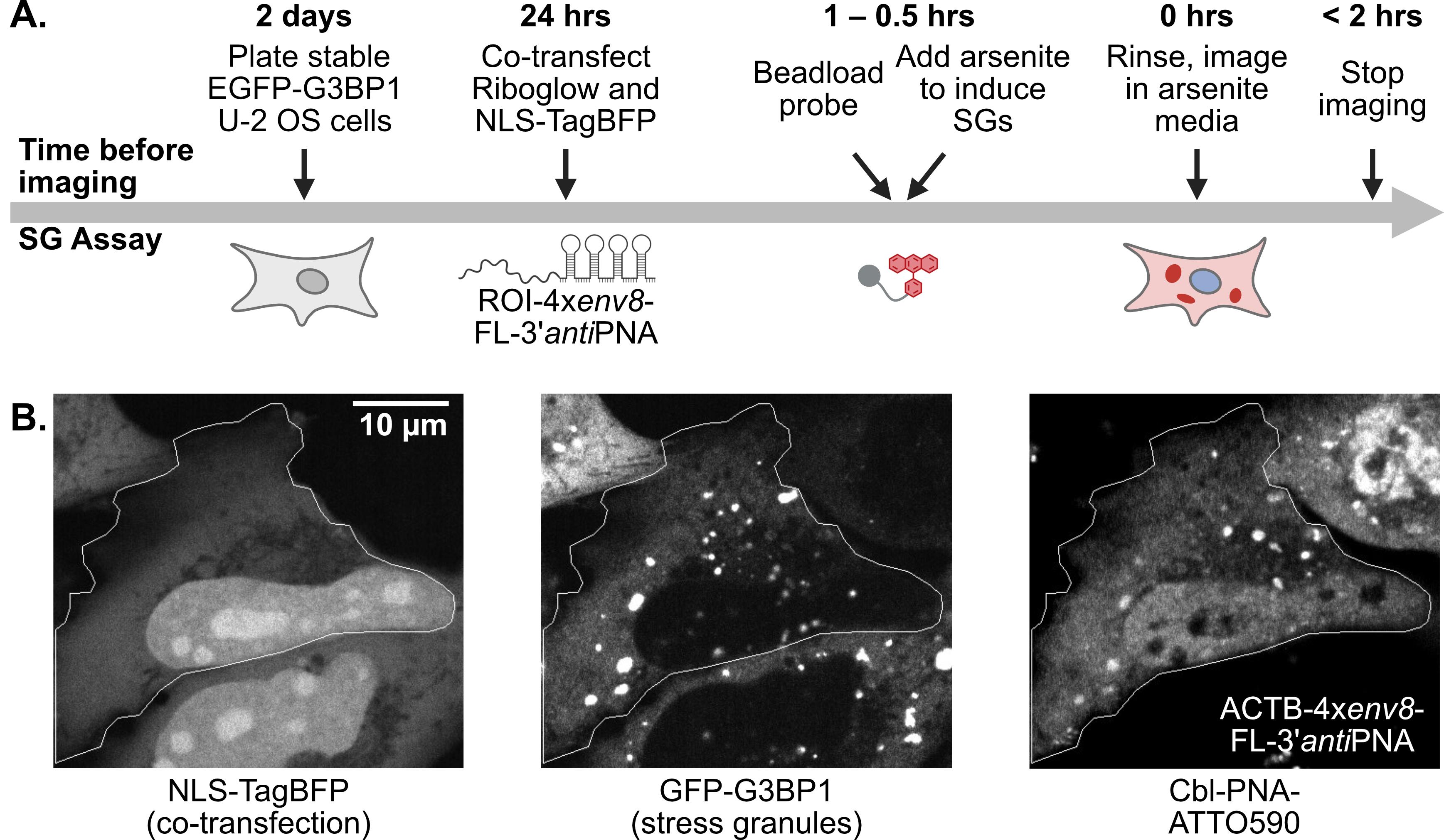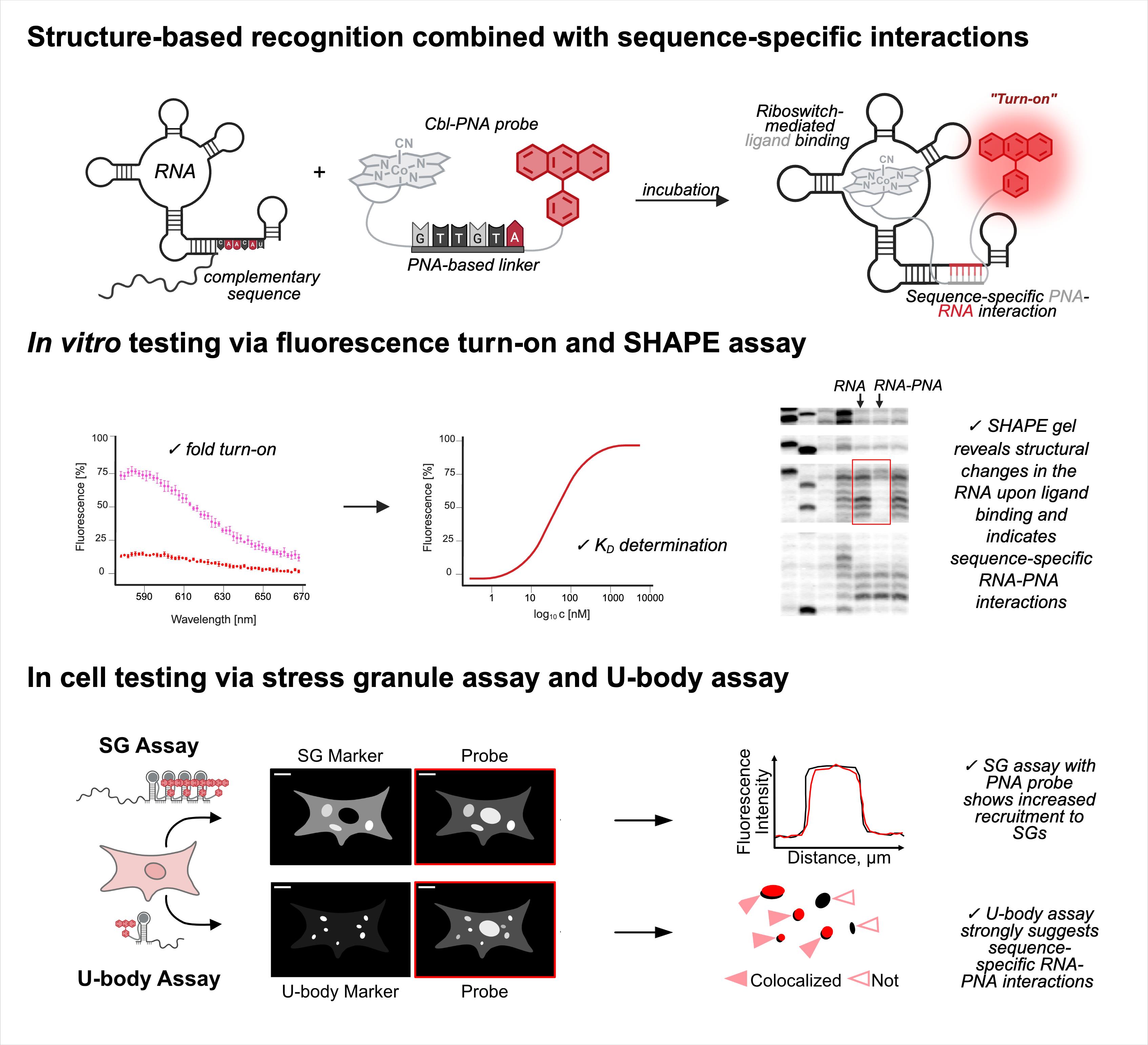 • Contains four parts, describing I) cobalamin-PNA probe synthesis, II) fluorescence turn-on assay, III) SHAPE assay, and IV) stress granule (SG) and U-body assays.