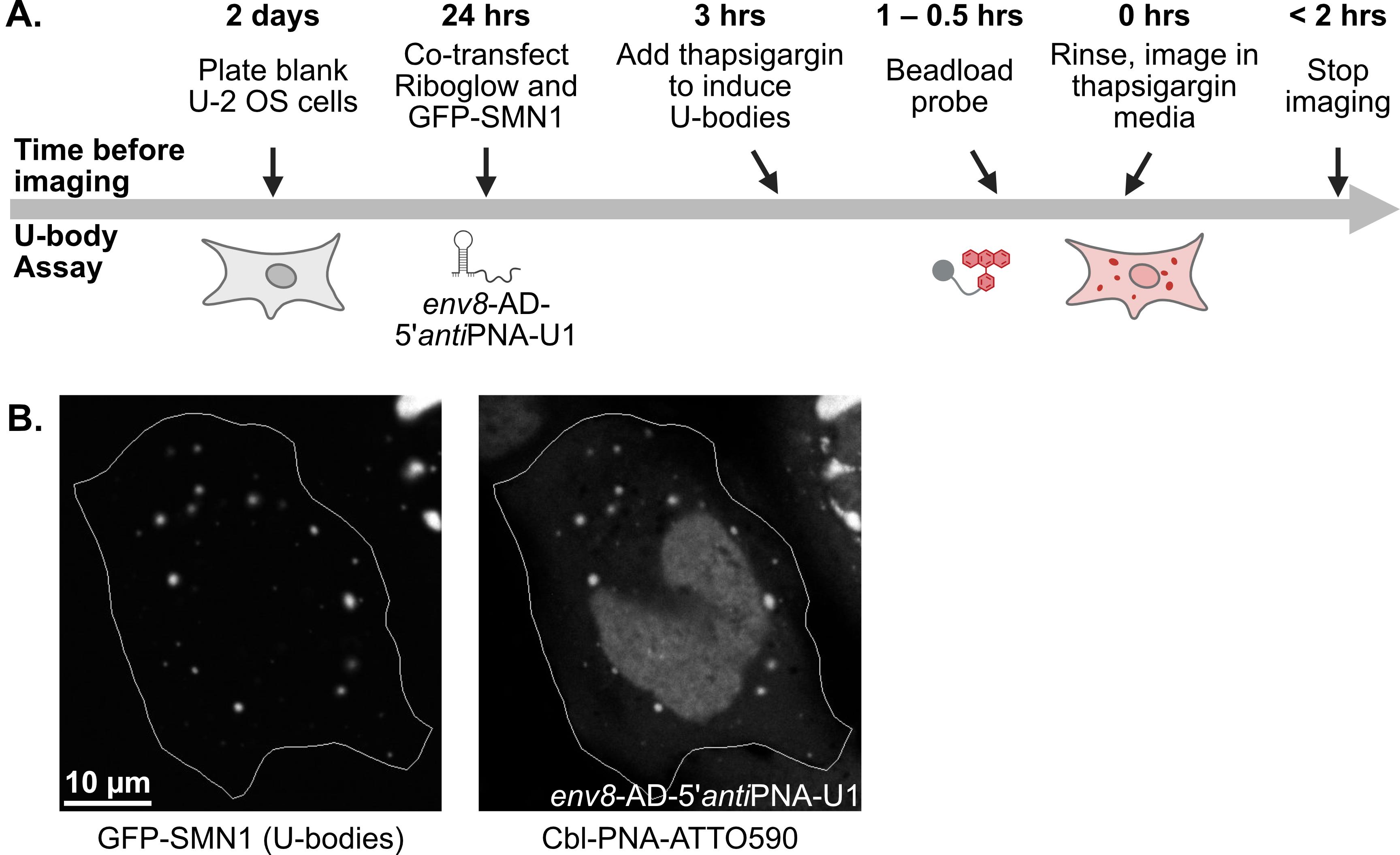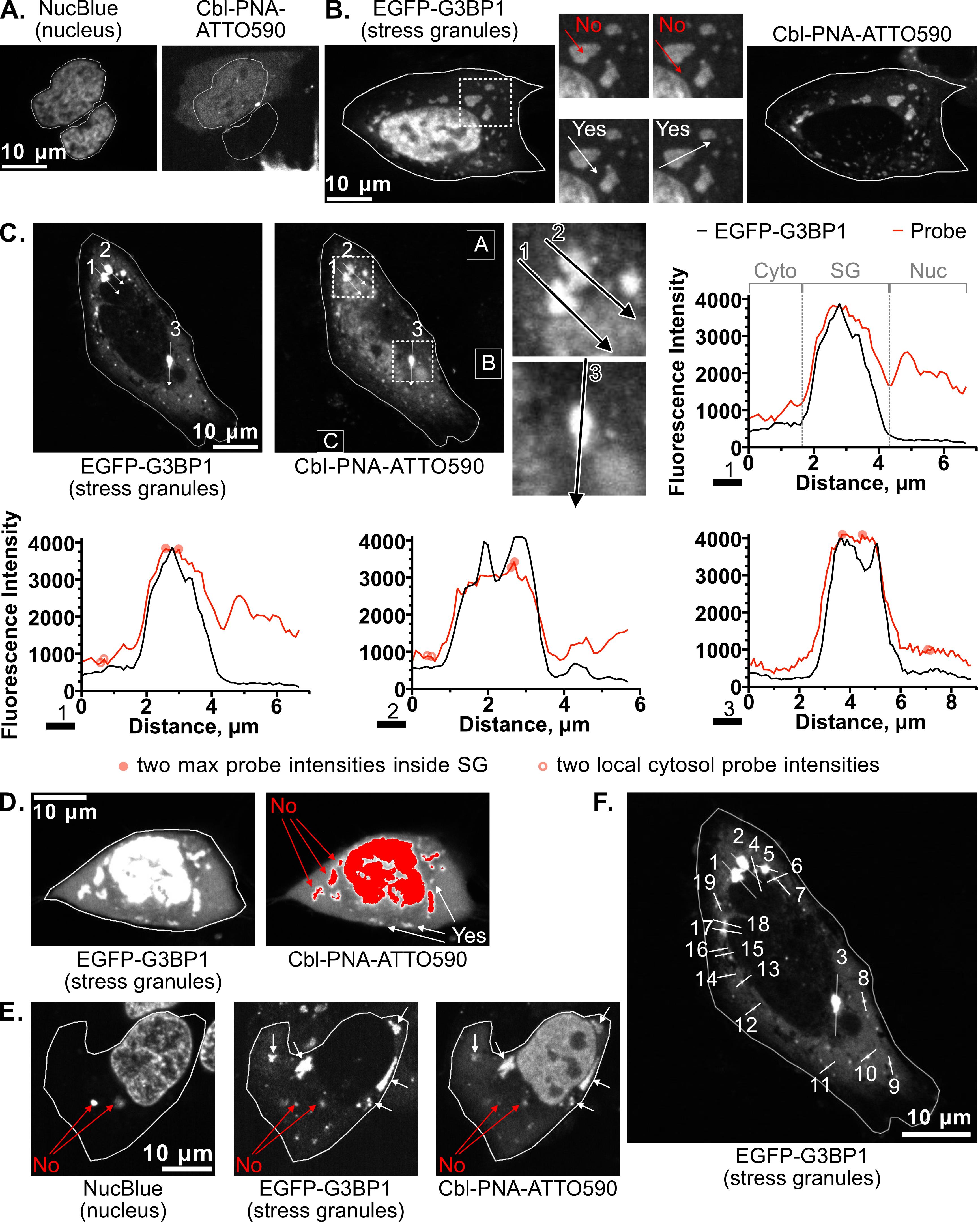 A.J.W., Cbl-PNA probe synthesis and fluorescence turn-on assay; E.M.R., SG and U-body assays; S.R.L., SHAPE assay. A.J.W., E.M.R., S.R.L.: writing – original draft. A.J.W., E.M.R., R.T.B., A.E.P.: writing – review and editing. R.T.B., A.E.P.: supervision, funding acquisition. Financial support: R01 GM133184 (A.E.P. and R.T.B.), R35 GM139644 (A.E.P.), R35 GM152029 (R.T.B.), T32 GM065103 (E.M.R., S.R.L.), F31 5F31ES033919 (E.M.R.), Polish National Agency for Academic Exchange PPN/BEK/2020/1/00219/U/0000 (A.J.W.). We thank the Shared Instruments Pool (RRID: SCR_018986) of the Department of Biochemistry at the University of Colorado Boulder for the use of the Typhoon 5. The Typhoon 5 is funded by NIH Shared Instrumentation Grant S10OD034218-01. The imaging work was performed at the BioFrontiers Institute’s Advanced Light Microscopy Core (RRID: SCR_018302). Laser scanning confocal microscopy was performed on a Nikon A1R microscope supported by NIST-CU Cooperative Agreement award number 70NANB15H226. We would like to thank Dr Joe Dragavon of the BioFrontiers Institute Advanced Light Microscopy Core for assistance with microscopy. We would like to acknowledge the University of Colorado Biochemistry Cell Culture Core Facility, especially Dr Theresa Nahreini, for providing resources and support for all our cell work. All protocol elements were validated in Wierzba et al. [12] RSC Chem Biol., 2025, 6, 249–262. Previous work from which the protocol was developed and/or modified include Braselmann et al. [10] Nature Chem Biol., 2018, 14, 964–971 and Braselmann et al. [17] Methods Enzymol., 2020, 641, 343–372.
