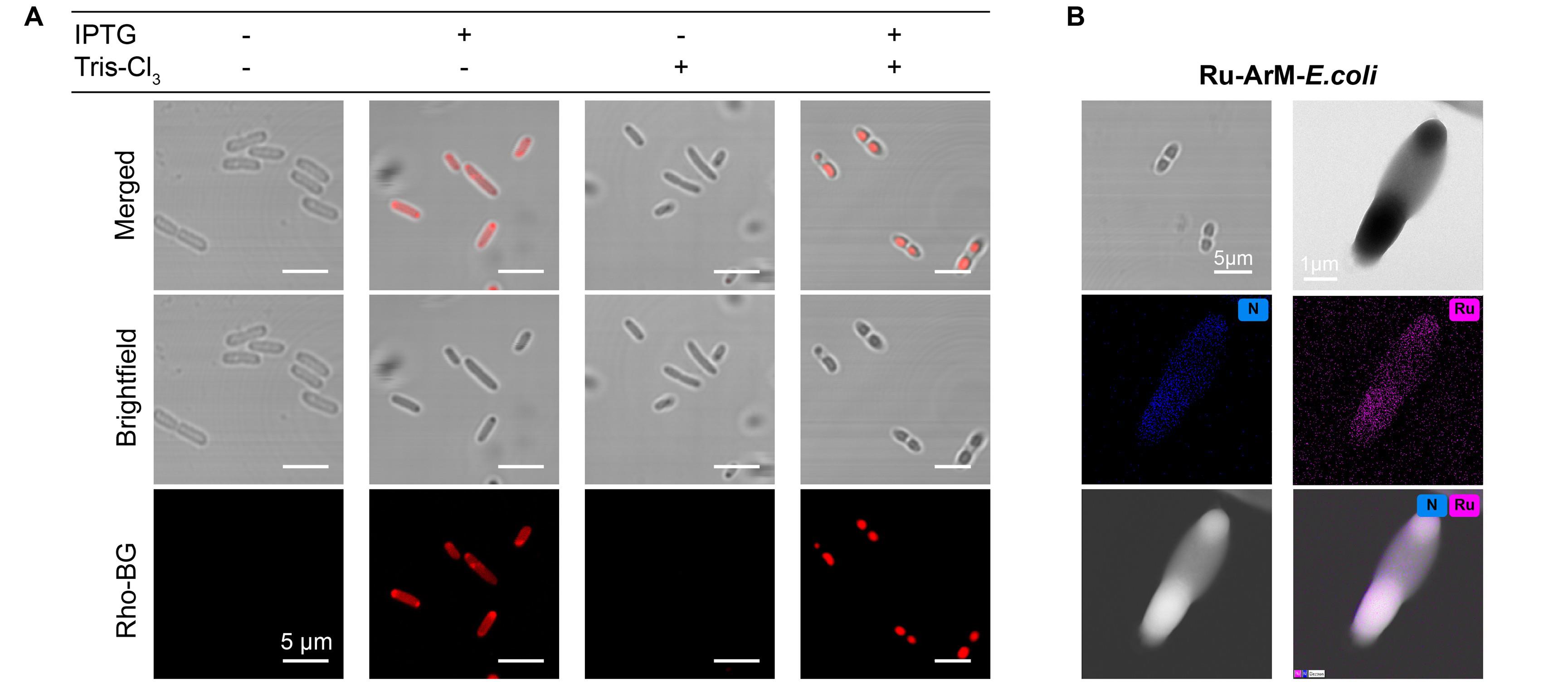 6. Characterize E. coli cells with Ru-ArM-containing artificial compartments by confocal microscopy and TEM, as shown in Figure 4B.