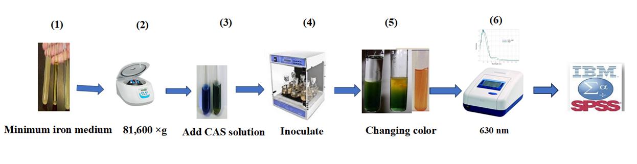 Castaneda et al. [25]. A spectrophotometric method to determine the siderophore production by strains of Pseudomonas fluorescent in the presence of copper and iron. Microchemical Journal.