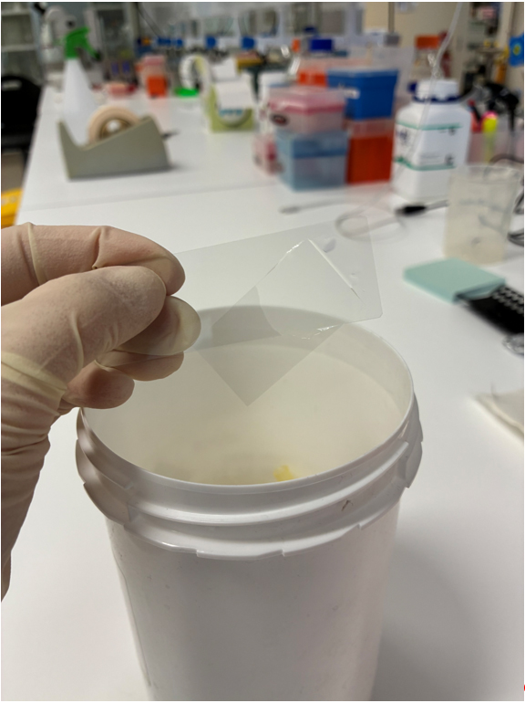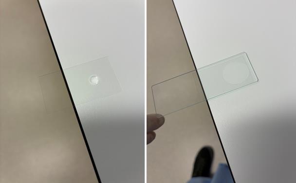 Note: The easiest way to do this is to apply the solution onto the coverslip first (placed on the bench) and then attach it to the microscope slide. Please see Figure 1.