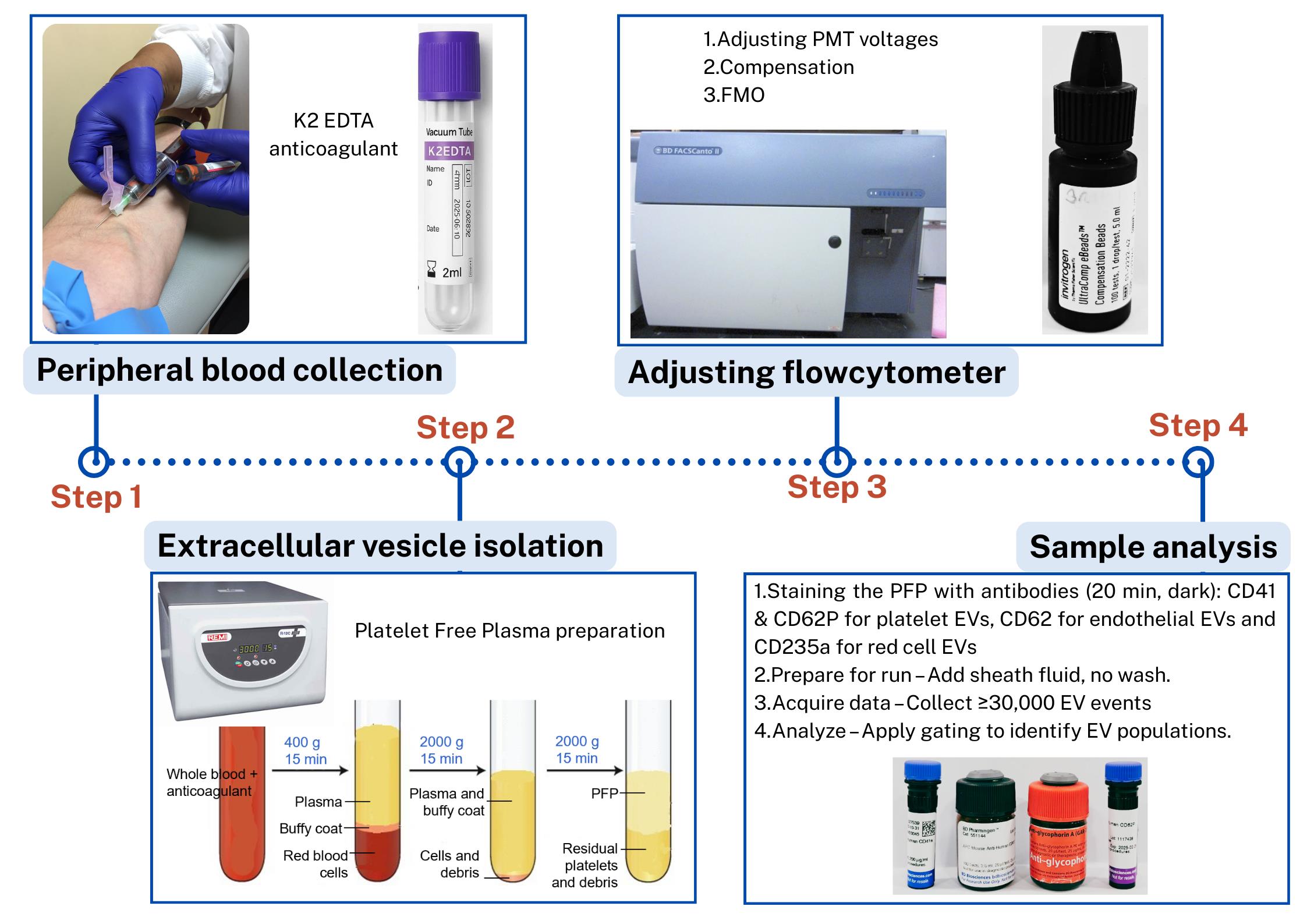 Steps in the isolation and flow cytometric analysis of extracellular vesicles (EVs) derived from red blood cells, endothelial cells, and platelets in human peripheral blood