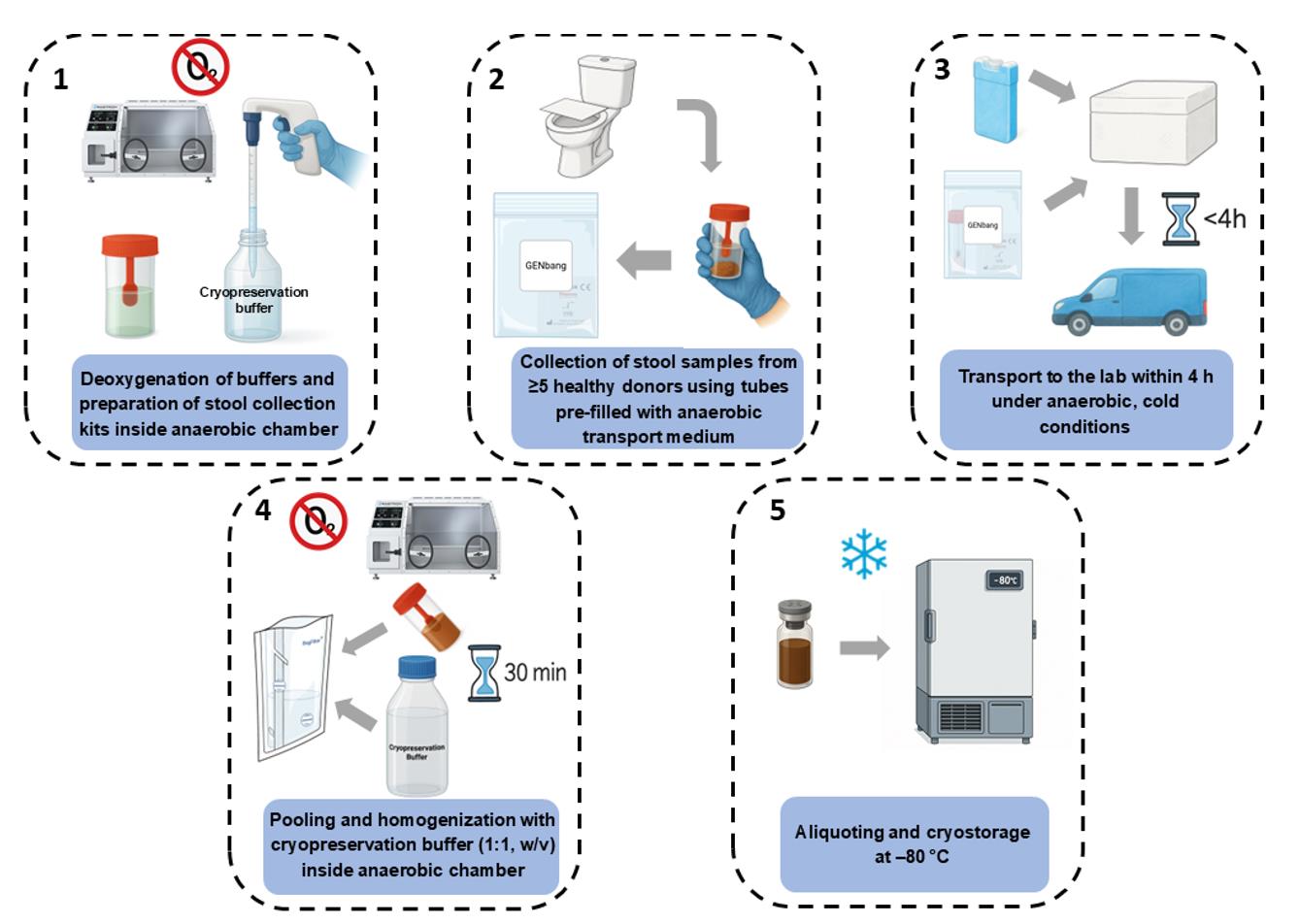 Donors are classified as healthy based on a pre-screening questionnaire (see Supplementary Material S1). Key exclusion criteria include (i) antibiotic or probiotic use within the last 3 months, (ii) reported gastrointestinal disorders within the last 3 months, (iii) diarrhea or vomiting within the past 2 weeks, and (iv) any chronic diseases or regular medication use. All procedures involving human-derived material must be approved by the relevant Institutional Ethics Committee before collection.