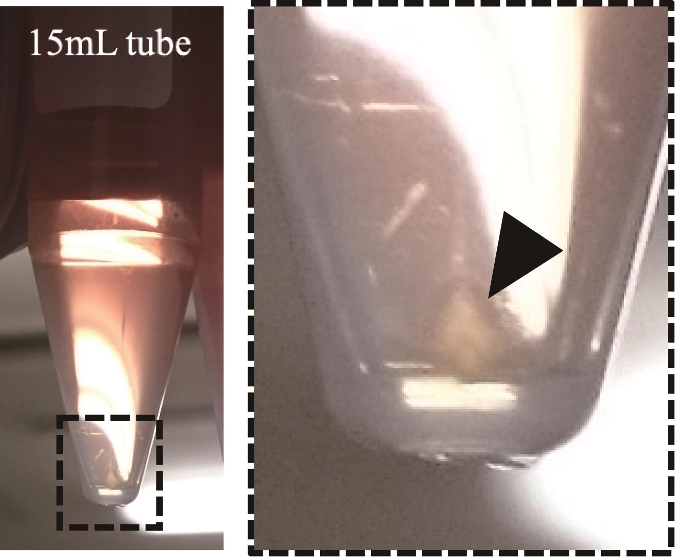 Figure 5. An image of the retrovirus pellet observed after centrifugation. The black arrowhead in the image indicates the retrovirus pellet.