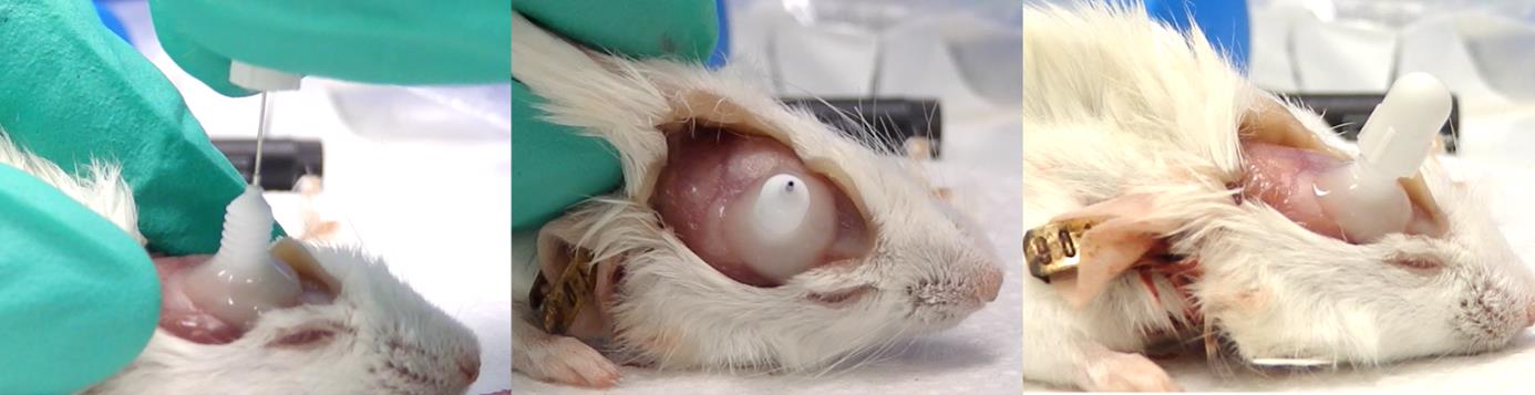 The choice of cement is therefore a critical factor in cannula implantation in mice, as the cement alone is responsible for securing the cannula in place. Typically, two types of dental cement are used: zinc polycarboxylate and methyl methacrylate (commonly referred to as pink cement). Zinc polycarboxylate is frequently associated with surgical complications, including skin necrosis, cannula detachment, and infection. Pink cement, although less reactive locally, contains a volatile hydrocarbon that can irritate the respiratory tract.