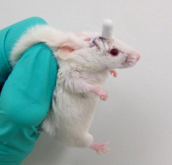 The 14 mice developed brain tumors, validating the inoculation procedure. At the end of the 5-week trial (one week for tumor engraftment, followed by four weeks of treatment), all surviving mice still had their cannula, which remained in very good condition. The cement was also still in place.
