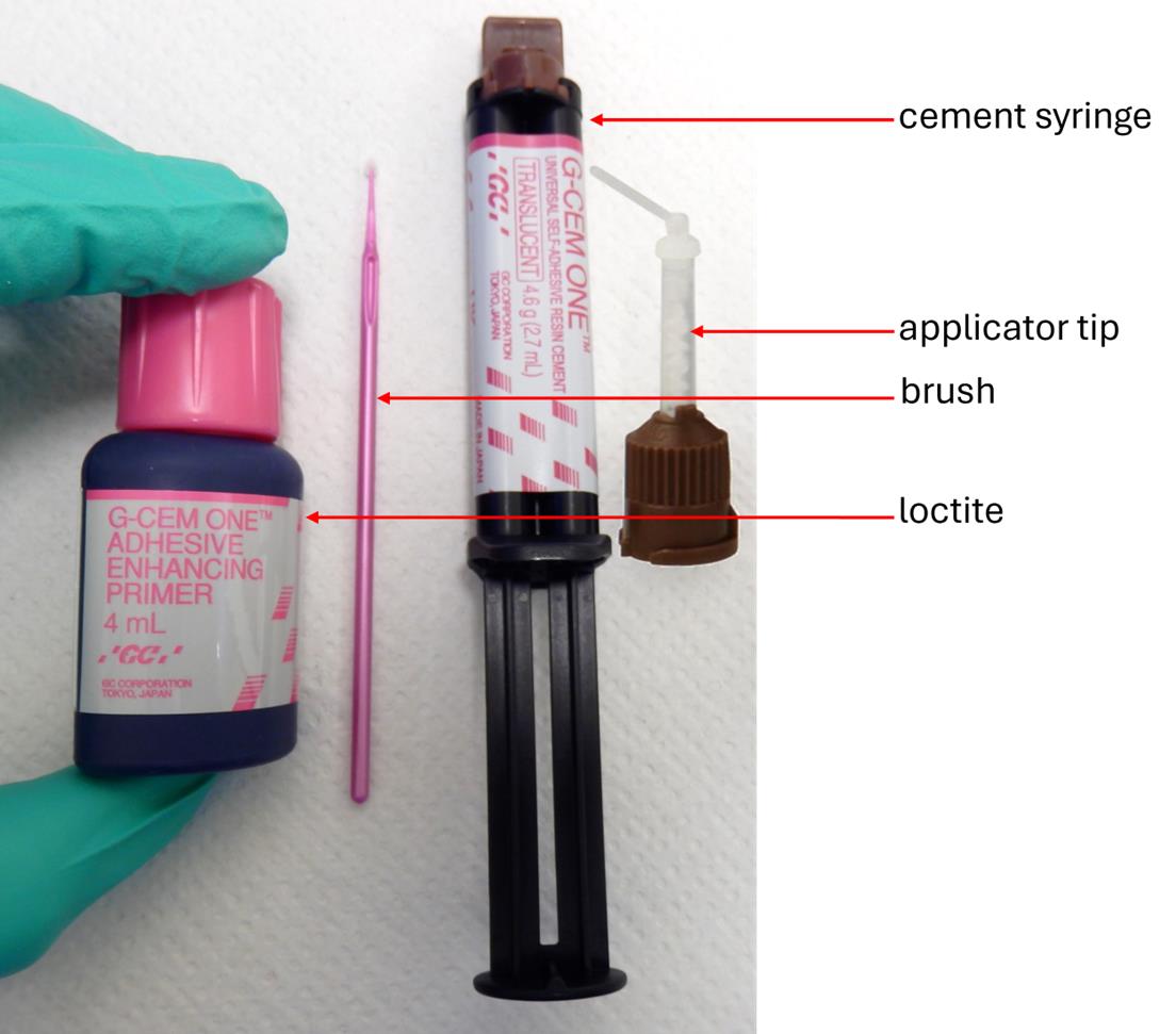 3. Dental cement G-Cem One kit, and provided loctite (Dental Addict, catalog number: CD-0683)