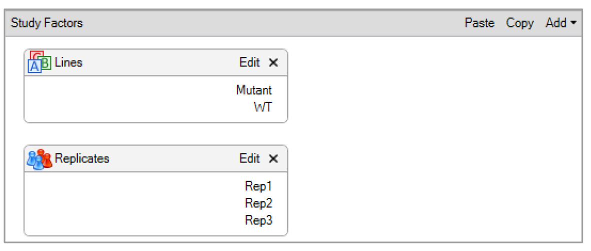 5. In the Study Definition tab, select the study factors (biological replicates, numerical, and categorical) and set the parameters (see Figure 4).
