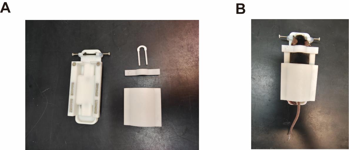 b. Sequentially attach the neck holder, back holder, and nose holder to the holder base to fix the mouse (Figure 1B).