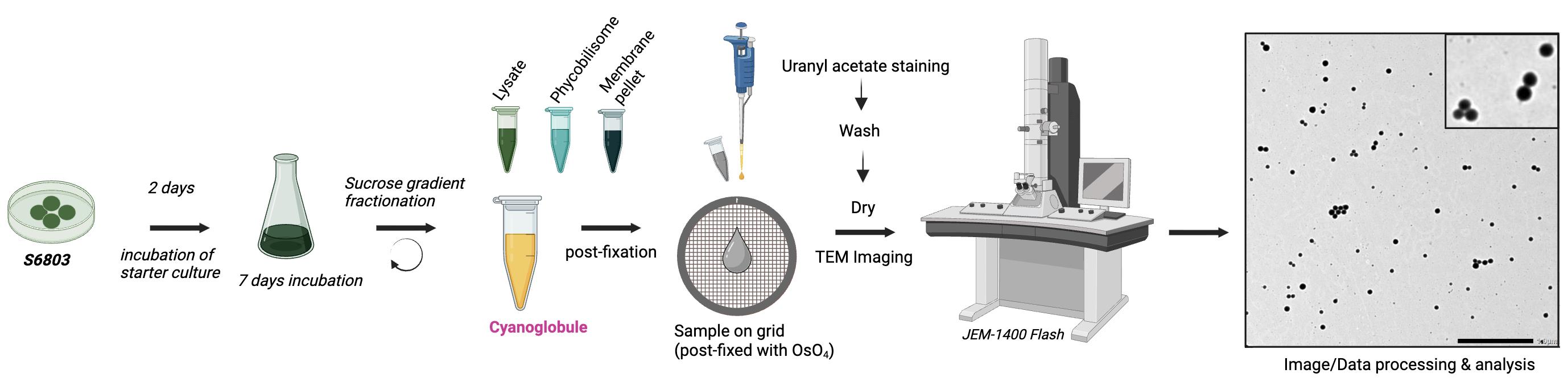 Overview of cyanoglobule lipid droplet preparation and negative staining for transmission electron microscopy (TEM) visualization