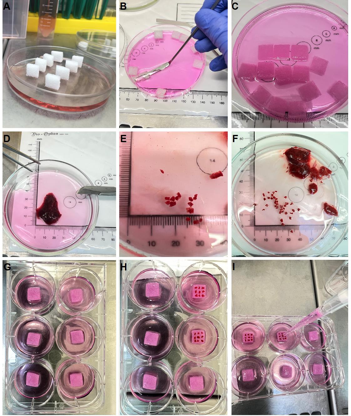 | A | The Gelfoam sponge floats in the medium. | The sponge has to be soaked in complete culture medium so that it lies at the bottom of the well, submerged in liquid with the explants on top of it. If the sponge is floating, it has not been pre-wet correctly. | 1) Pre-wet the sponge in complete culture medium and press on it gently with a spatula or forceps. 2) Extend the incubation in the medium for the sponges. 3) Refer to Figure 1 for images of a correctly soaked sponge. |