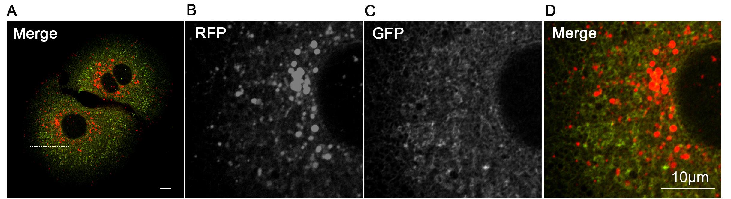 • Quantifies ER-phagy flux via pH-sensitive RFP-GFP signal ratiometry and lysosomal co-localization in vivo.