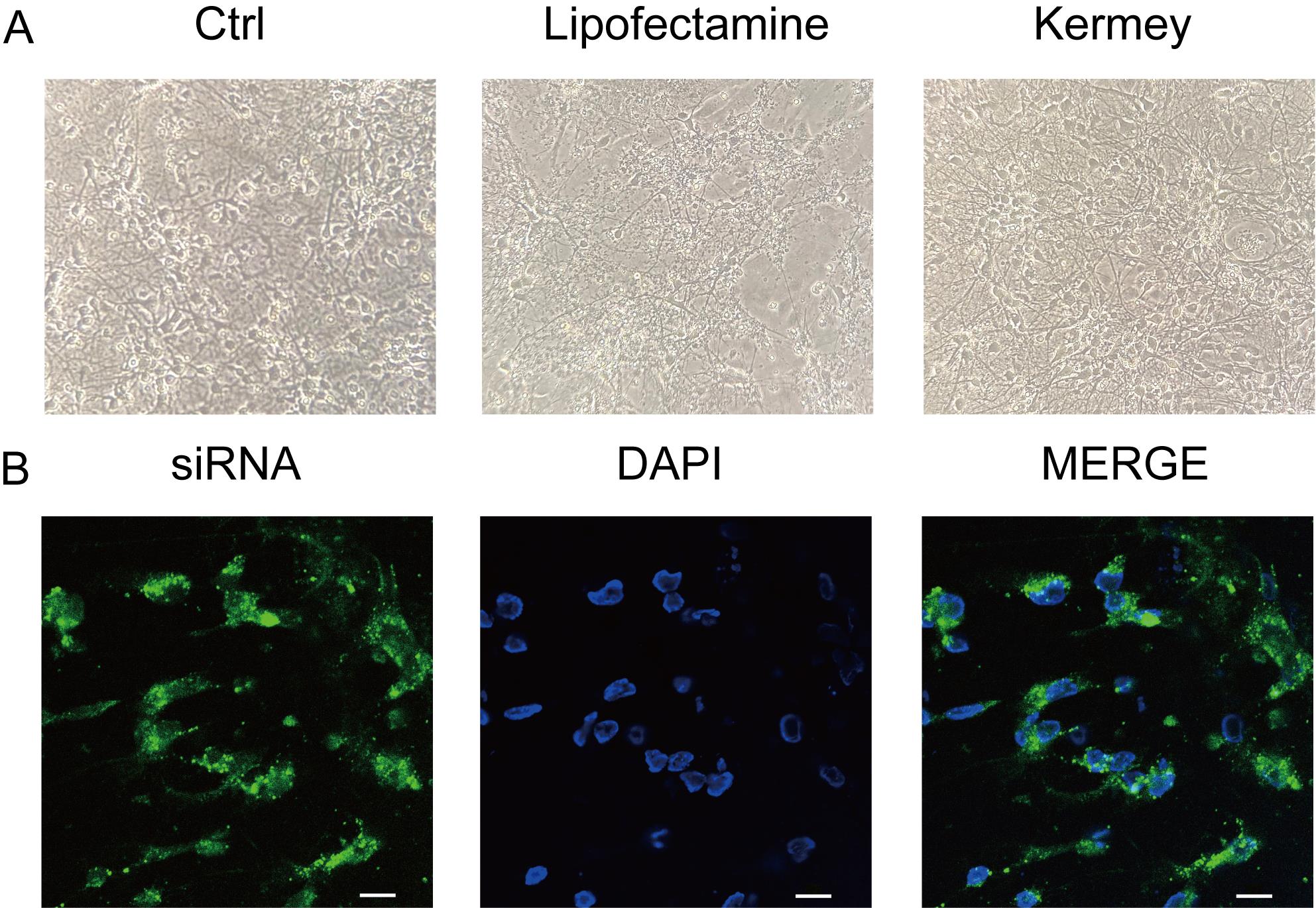 Note: Most neurons were successfully transfected with negative control siRNA (Figure 3B), as indicated by the evenly distributed green fluorescence throughout the cytoplasm, demonstrating the effective delivery of siRNA using the Kermey transfection reagent.