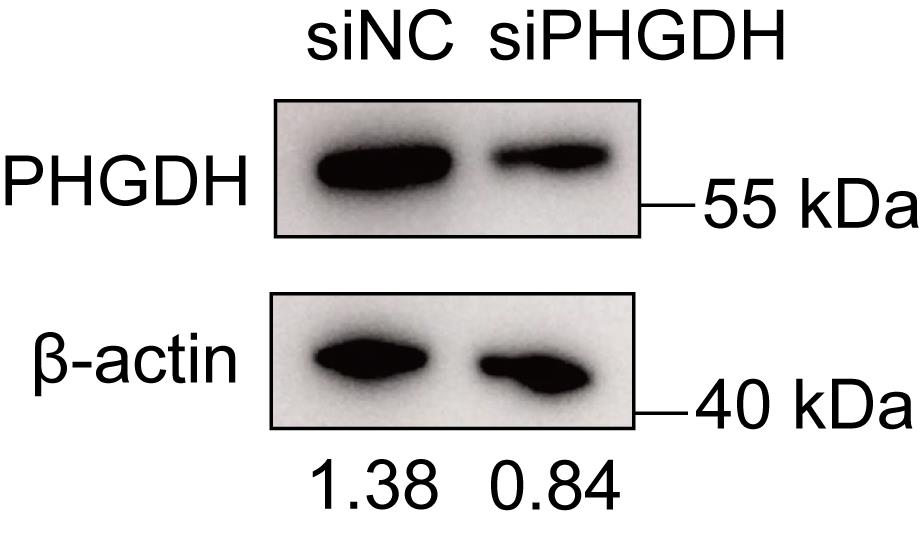 2. We analyzed the western blot results using ImageJ by calculating the ratio of PHGDH band intensity to the corresponding actin band intensity for both the experimental and control groups.