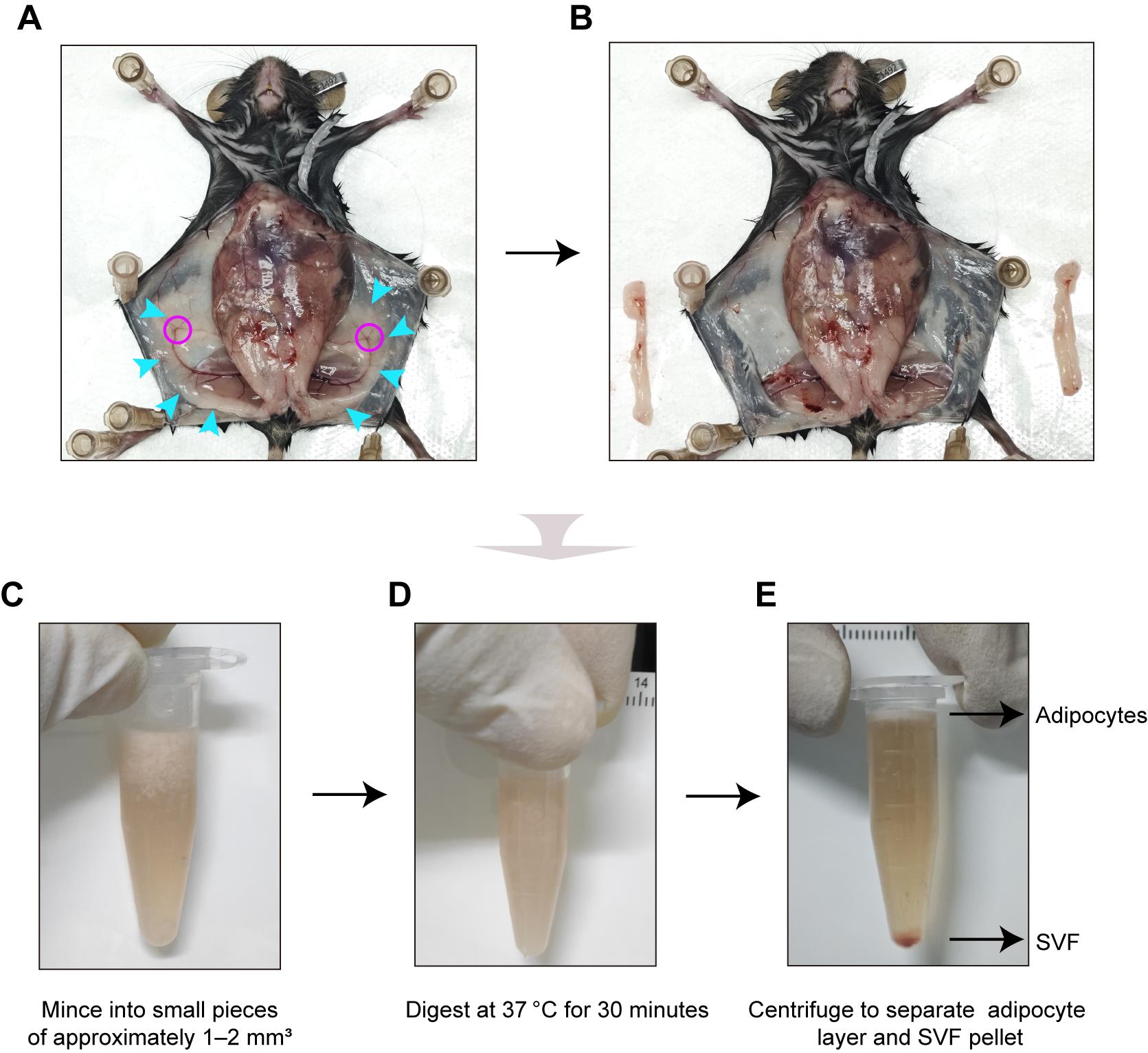2. Isolation of primary SVF: Due to their high susceptibility to microbial contamination, maintaining strict aseptic technique is critical throughout all steps of primary SVF isolation. The use of sterile reagents and equipment is mandatory.