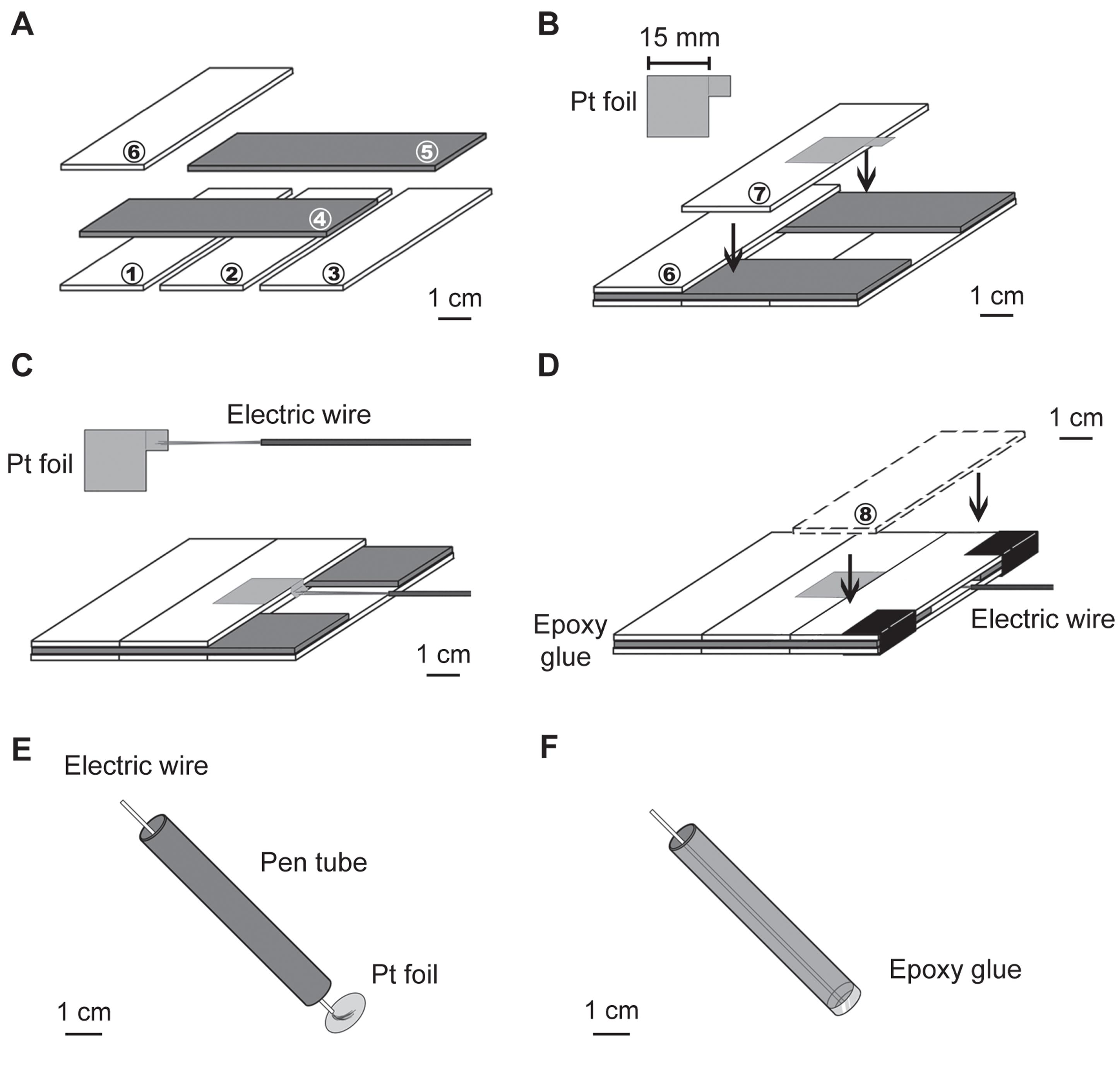 3. Electric wires, multi-core tinned copper, O.D. 1 mm with insulation, in red and black for the positive and negative electrodes, respectively (TopTech Wire and Cable, catalog number: 1007#24)
