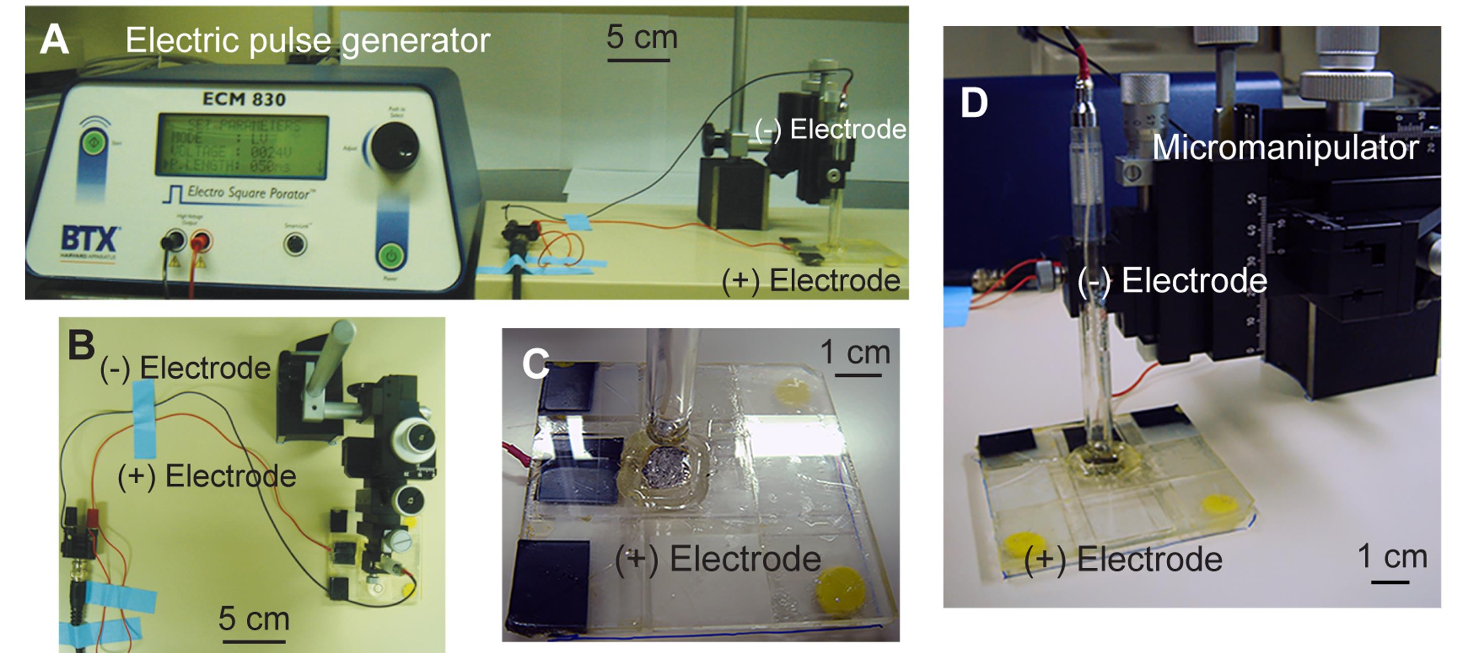 9. Verify the presence of bubbles on the platinum electrode surface as an indication of successful electroporation (Figure 4D).