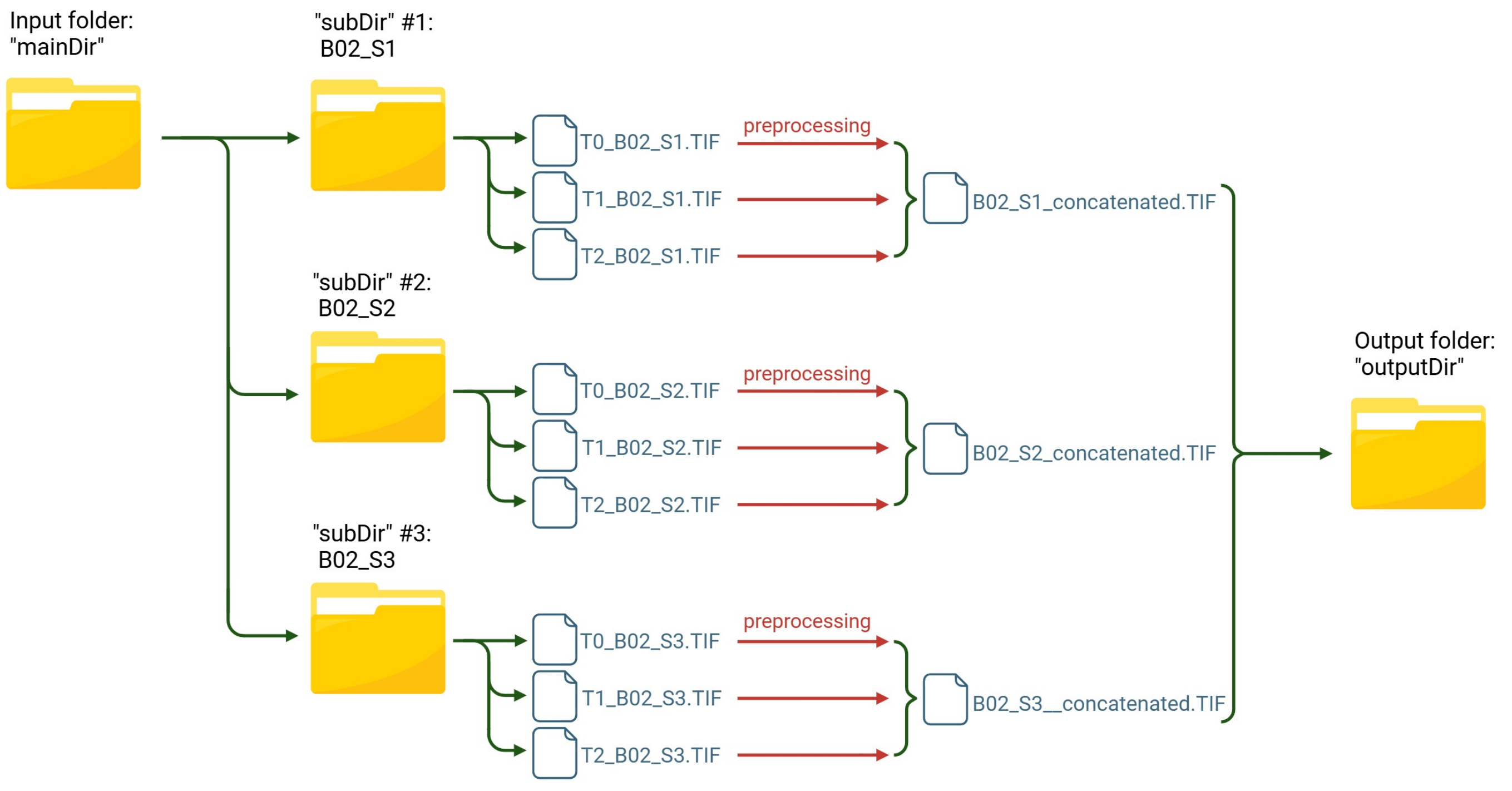 c. After processing all the images in the subfolder, it concatenates them into a TIF file and saves it with the suffix “_concatenated”.