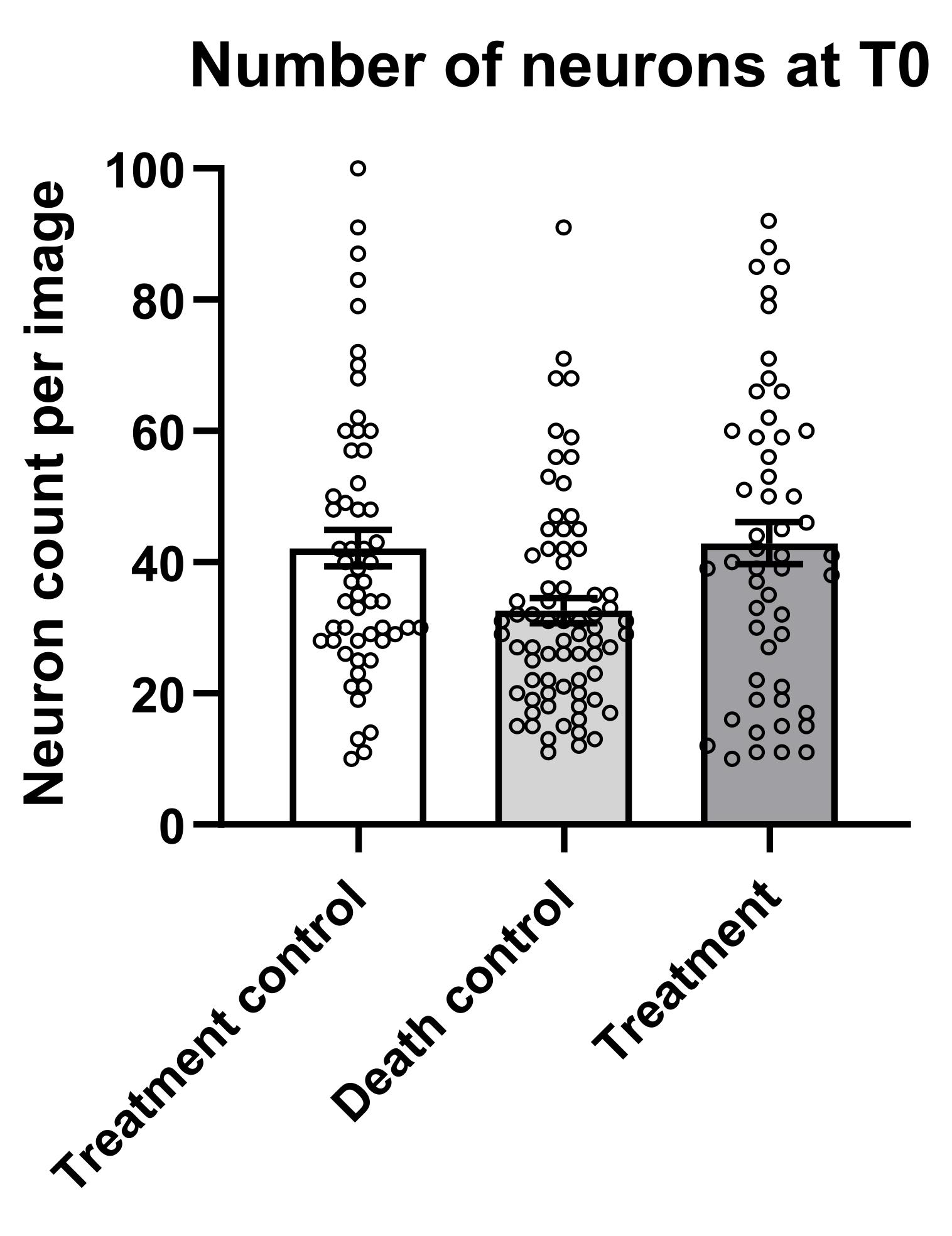 1. From the .csv file previously generated, extract the number of neurons detected at T0 and group them for conditions in Excel or Prism. Check the range of starting neurons in each condition to verify if they have comparable ranges (Figure 13).