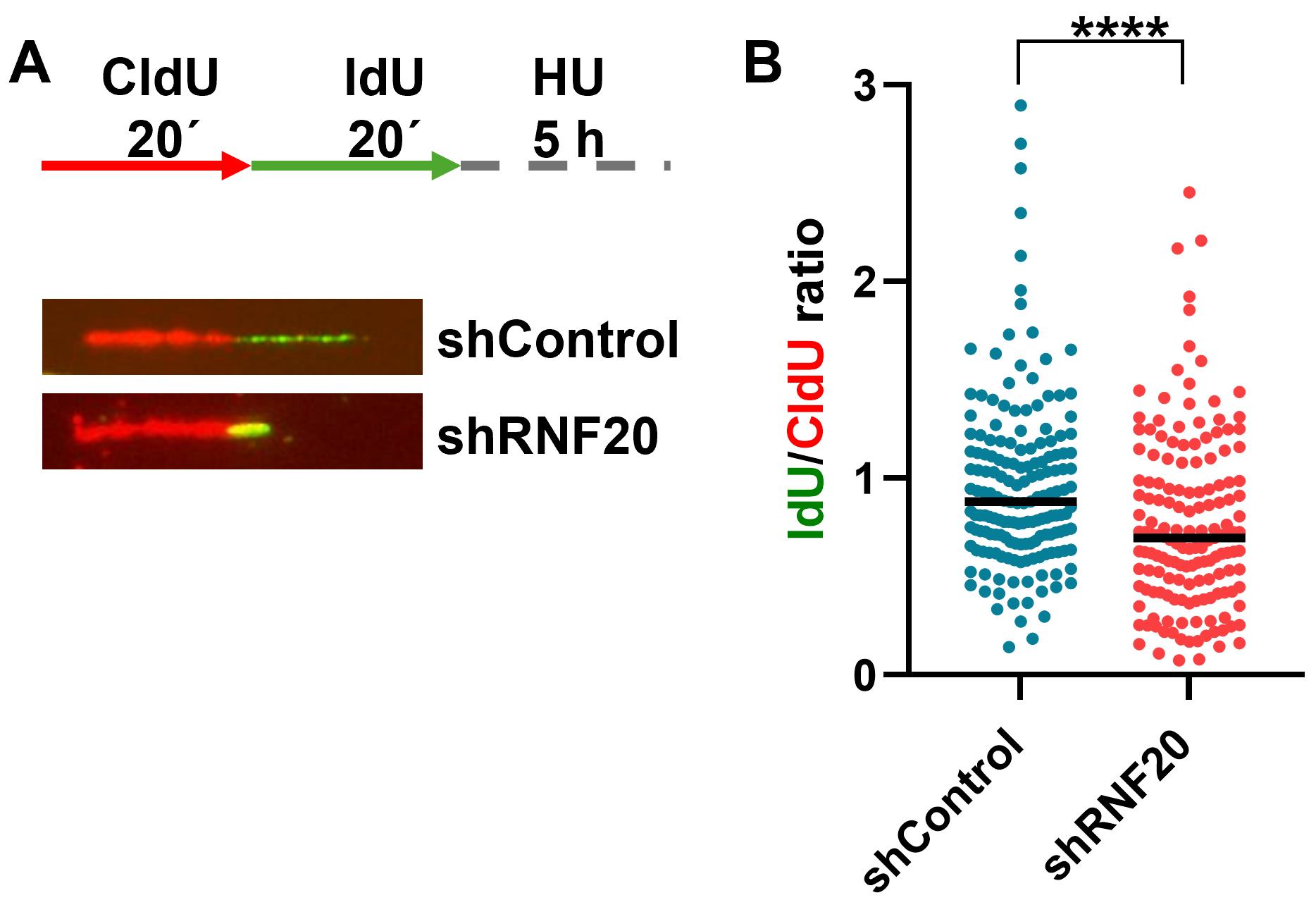 Debanjali et al. [25] RNF20-mediated H2B monoubiquitination protects stalled forks from degradation and promotes fork restart. EMBO reports (Figure 3A–I; Figure 4A–B; Figure 5C–F, I–J; Figure 6D–F).