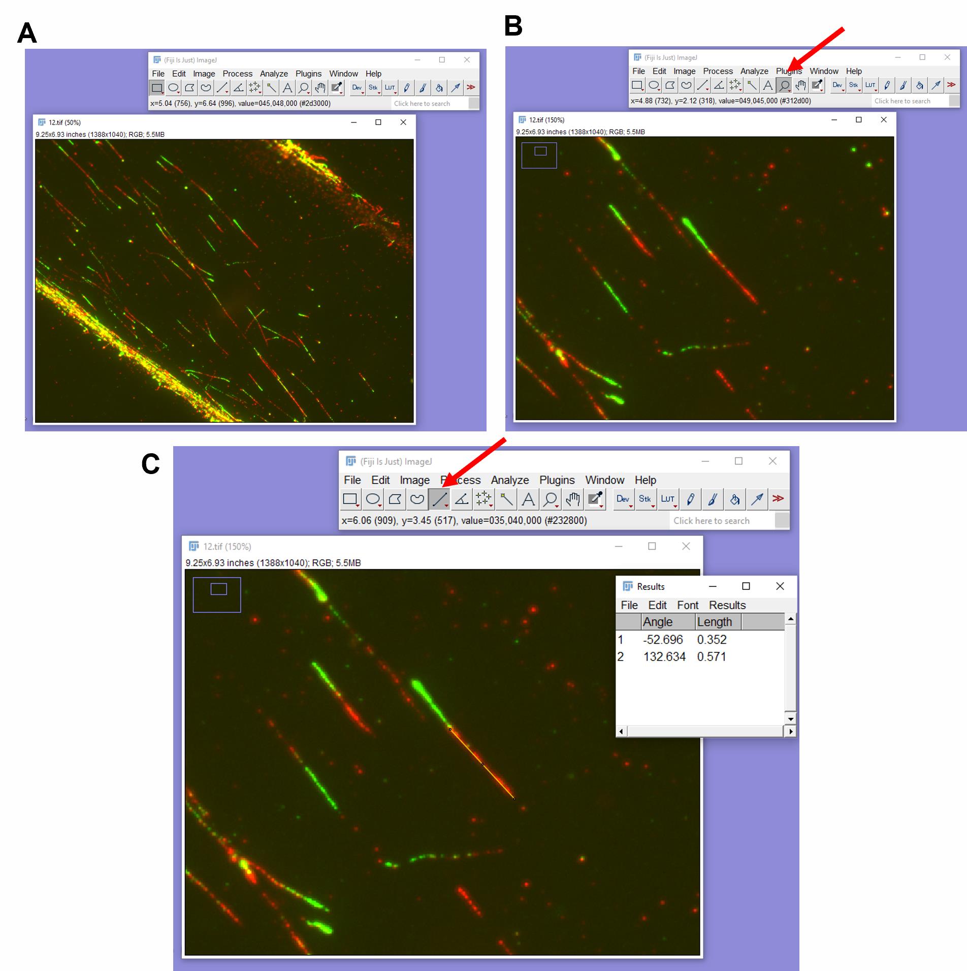 a. To calculate the length of IdU or CldU tracts, open the image in ImageJ. Zoom into the area where the fibers are well-separated and clearly visible (Figure 9A, B).