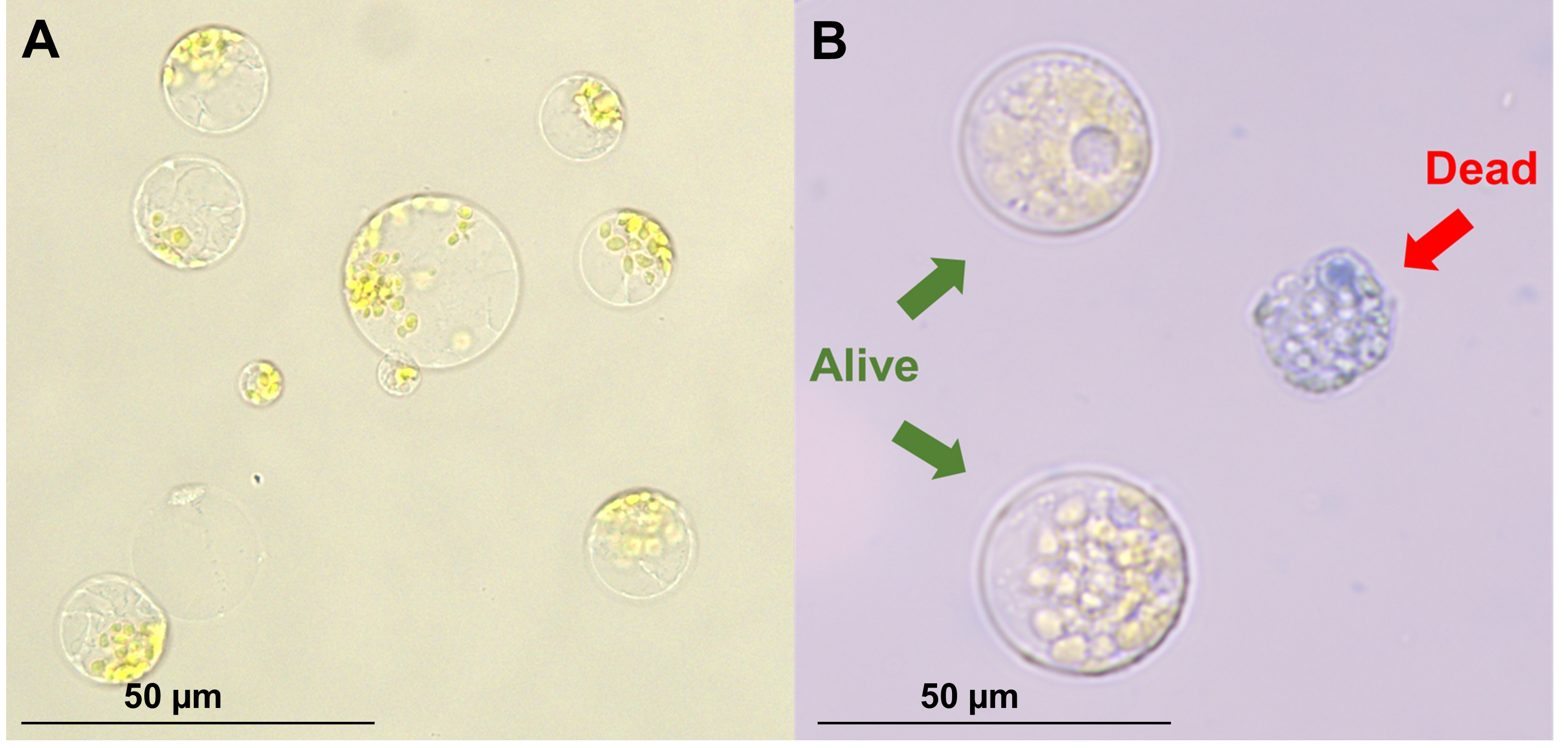 10. Count protoplasts and assess viability using Trypan Blue (0.4%) and a hemocytometer (Figure 4B).