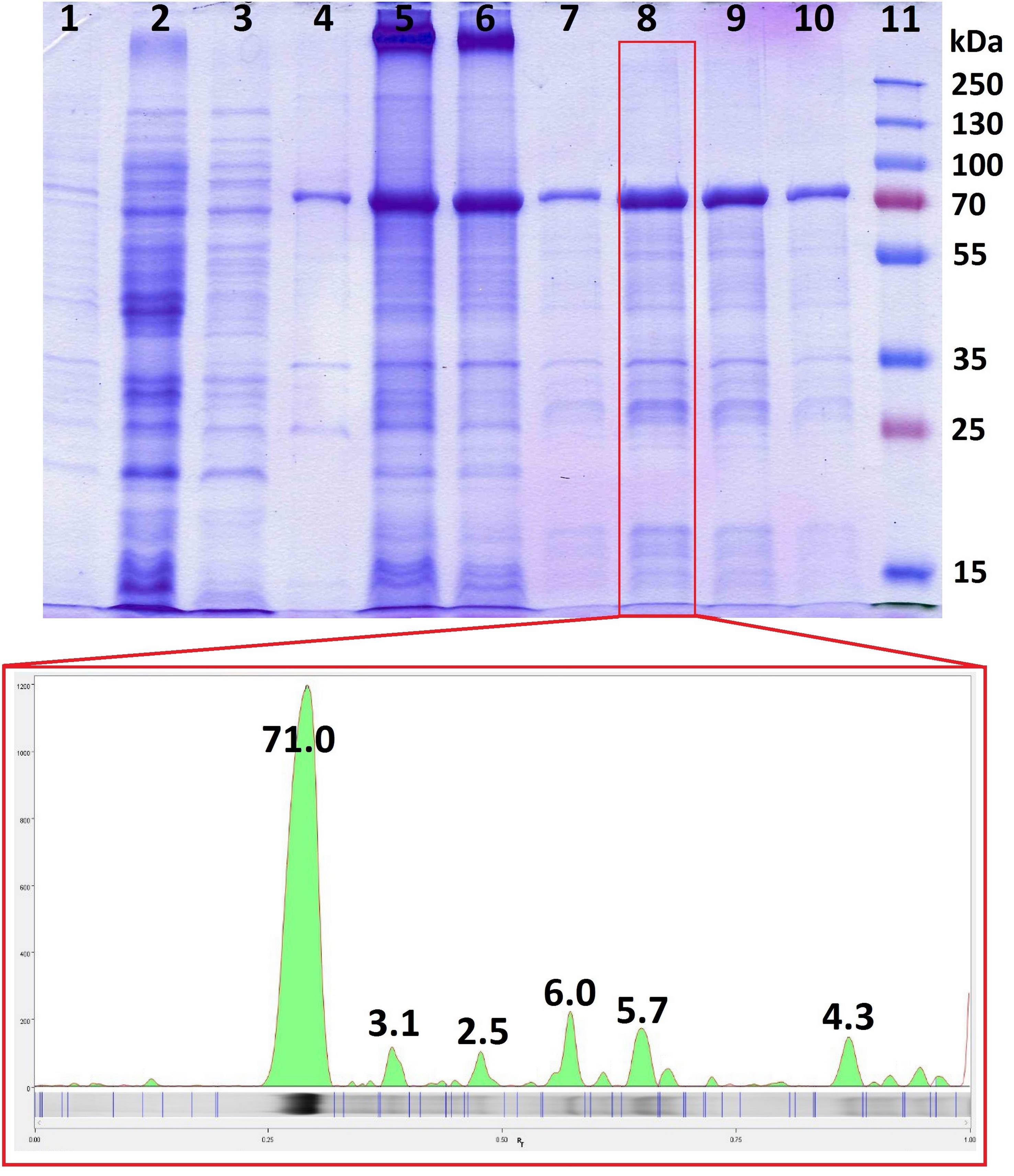 1. Include fractions for pooling only if the target protein represents >70% of the total protein by densitometry.