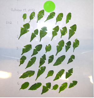 ROSETTE LEAVES: Rosette leaf wax extraction and image capture for area calculation. As with stems, take care to minimize sample handling, and use forceps, not your hands, whenever possible.