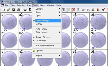 After adapting count settings for the first plate use this settings for reading all plates of the same experimental batch