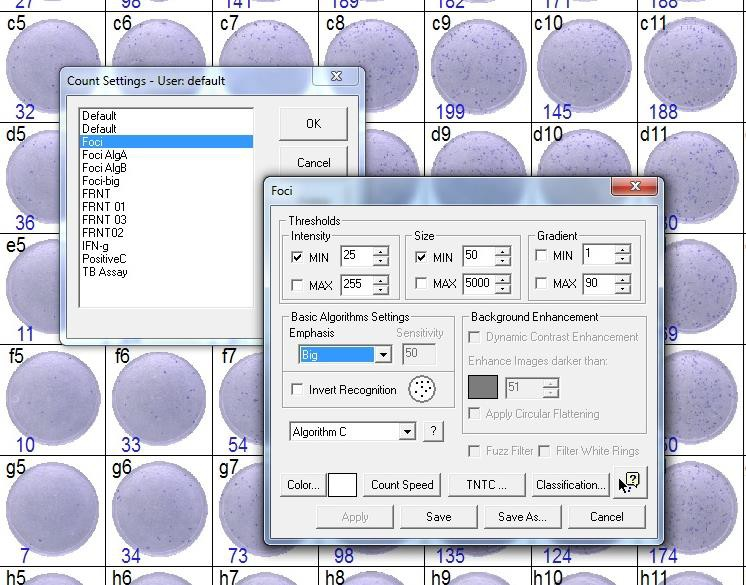 8.23. Count the foci or scan the plates immediately (optional store plates in the dark at 4°C)