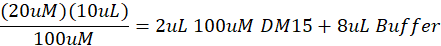 Example calculation: For final [DM15] = 4uM, 5X [DM15] = 20uM