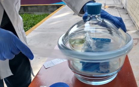This protocol is divided into three stages. Before starting the experiment, it is necessary to read the entire protocol, since gaseous chlorine is extremely toxic. Wear vinyl or latex gloves, face shield, and lab coat. If you do not have a gas extraction hood, carry out the protocol in a widespread and ventilated place. It is recommended to do it outdoors.