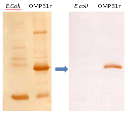 We used a recombinan protein of Brucella melitensis (OMP31r), cloned in pET28a and expressed in E. coli, but had plenty of problems when the bovine´s seruns regcognize not only the OMP31r but also the proteins from the exprssiion system. The pre-absortion of the non-specific OMP31r antibodies in the bovine´s serums with the method of the powder extract from Escherichia coli was very useful, obtaining good results performing an immunological evaluation of this protein.