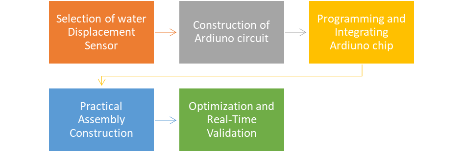 The tool's core element is an Arduino Uno microcontroller board, which offers the required control and data collecting capabilities. Its job is to communicate with the water displacement sensor and manage how it works. The water displacement sensor, which is made to detect and measure changes in volume, is essential for calculating the amount of fluid that is displaced when drug samples are introduced. The sensor measures changes in fluid volume inside the measuring chamber and translates those changes into electrical signals that the Arduino Uno can use to process them.