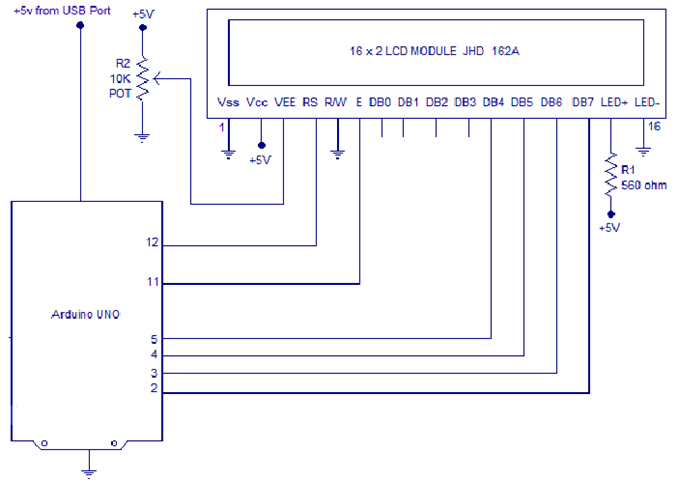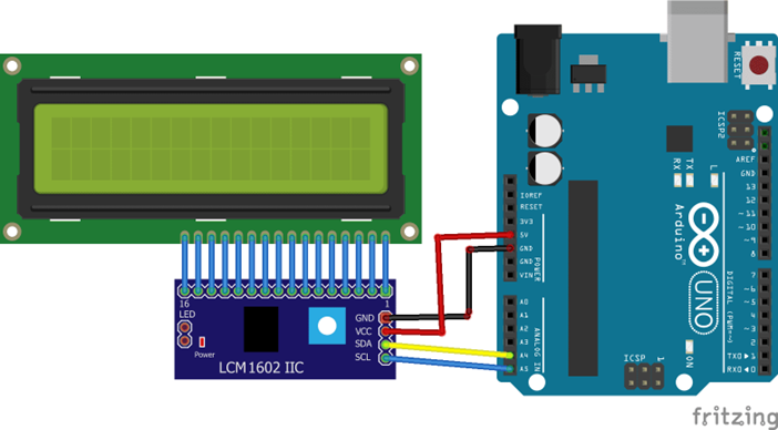 Figure 5: LCD 1602A and Arduino Connection via IC