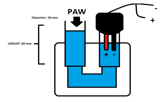 One end of the tube will be used for the dipping the paw while other end will contain the sensor that will sense the water displacement. To increase the sensitivity of the electrodes we have made a cup shape electrodes that will provide more surface area to voltage and will give more accurate results.