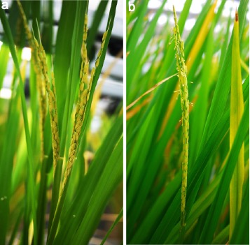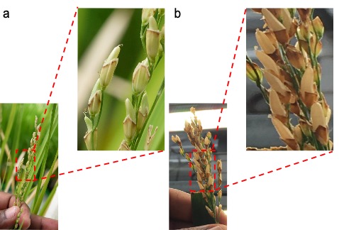 Figure 3. Panicles at (a) pre- and (b) post-flowering stages of individual plants.