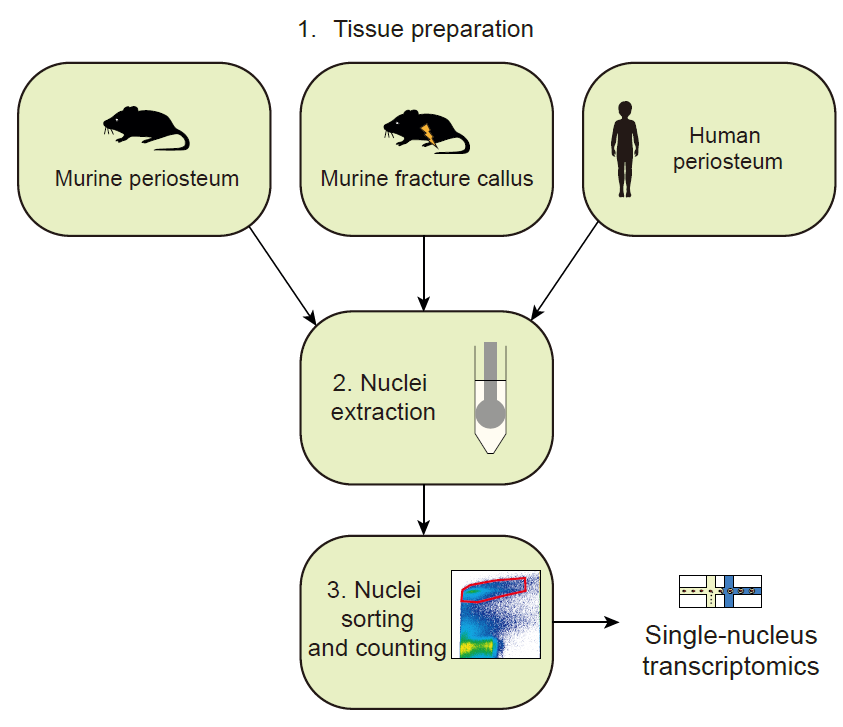 Keywords: Nuclei isolation, Single-nucleus RNA-seq, Periosteum, Fracture callus, Fluorescence-activated nuclei sorting